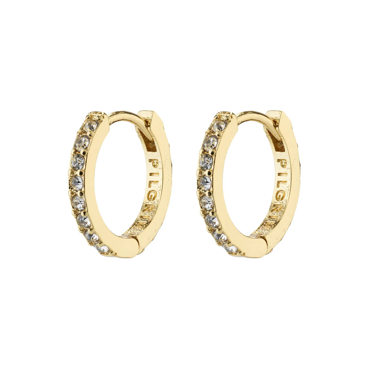 Shine like the sun! Små, guldbelagte creoler med glitrende Preciosa-krystaller er det perfekte glam-krydderi til ethvert outfit. Style dem med en printet T-shirt, og skab en lækker kontrast til det eksklusive udtryk. Kan naturligvis også fuldende dit party outfit som en funklende detalje. Whatever you prefer. Øreringene har en smart kliklås, der gør dem lette at anvende.