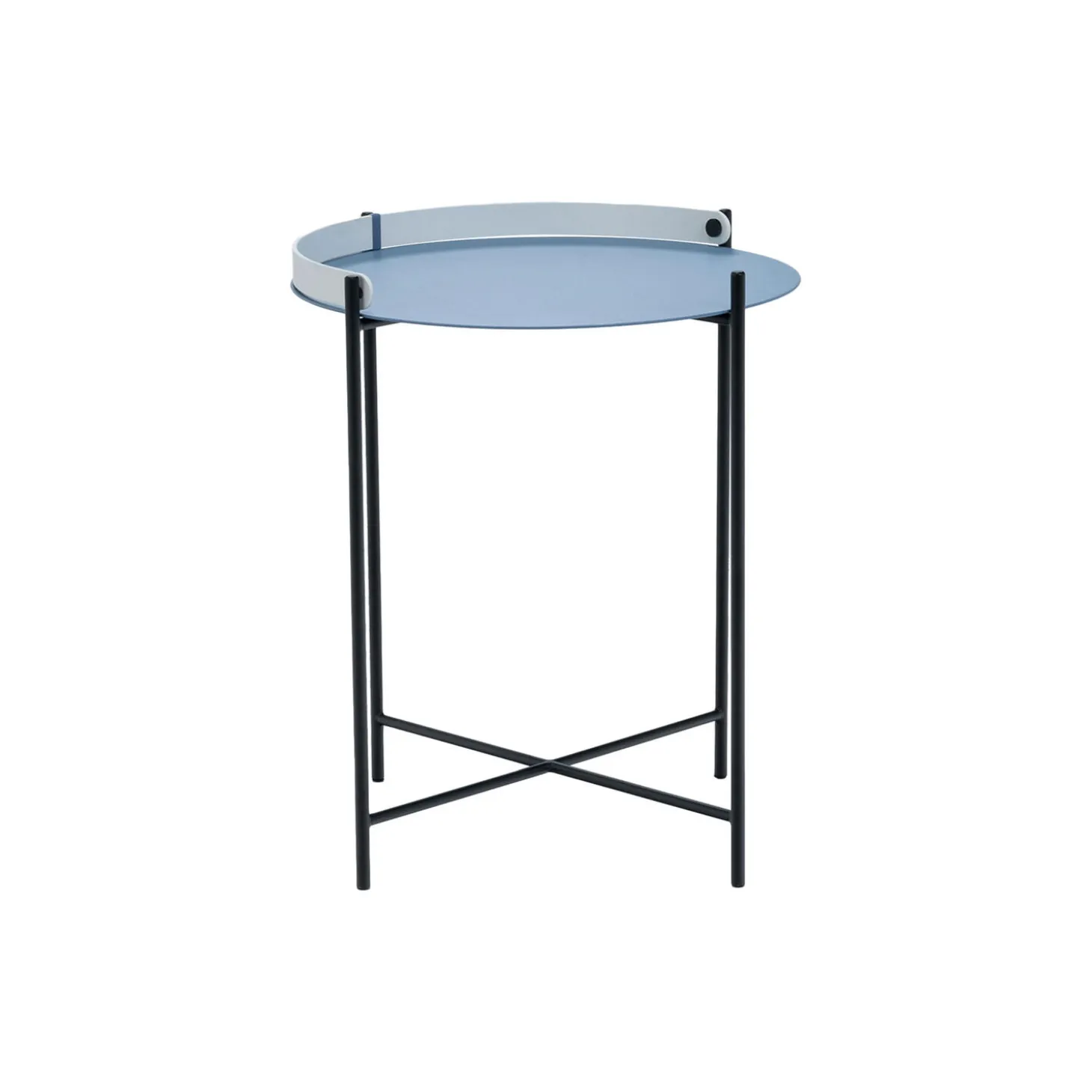 EDGE bakkebord i pulverlakeret metal fra HOUE. Farve: pigeon blue/white. Mål: H: 53 x Ø 46 cm. Design: Roee Magdassi.