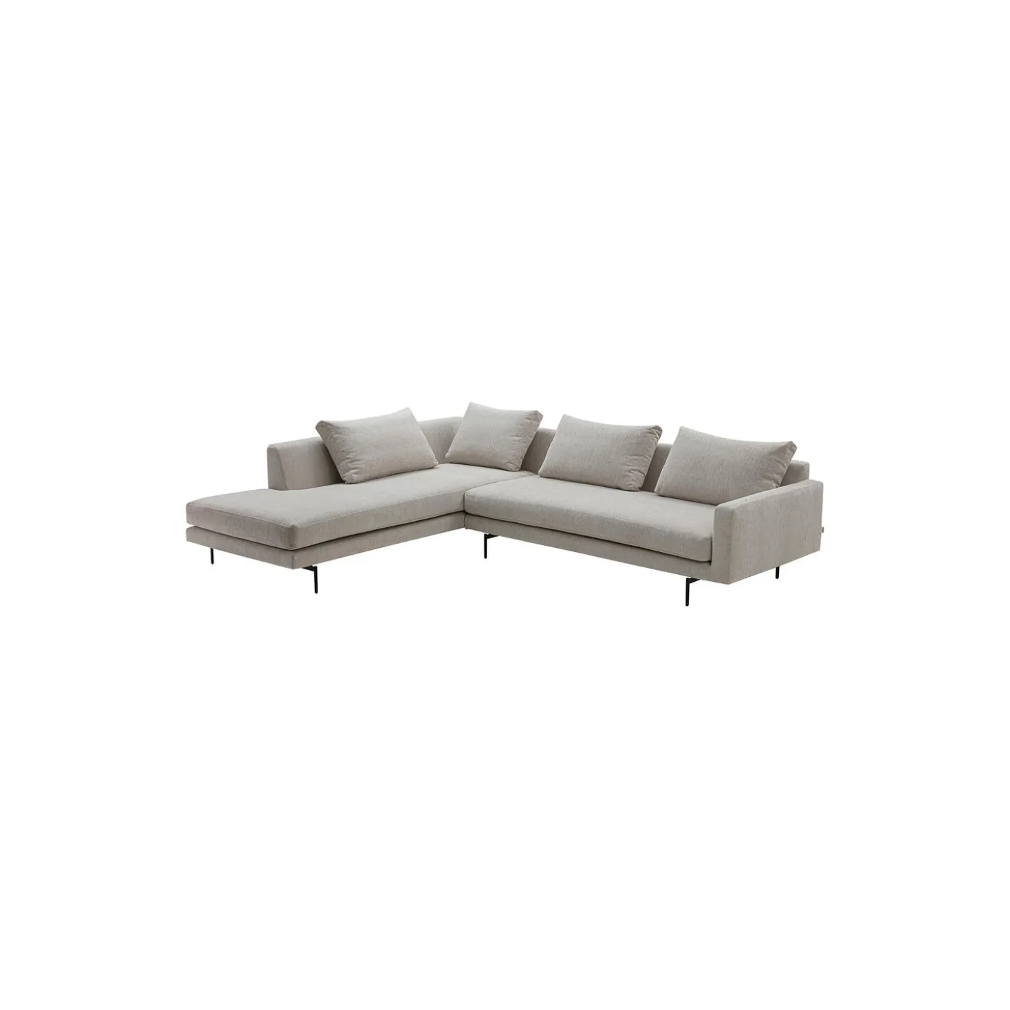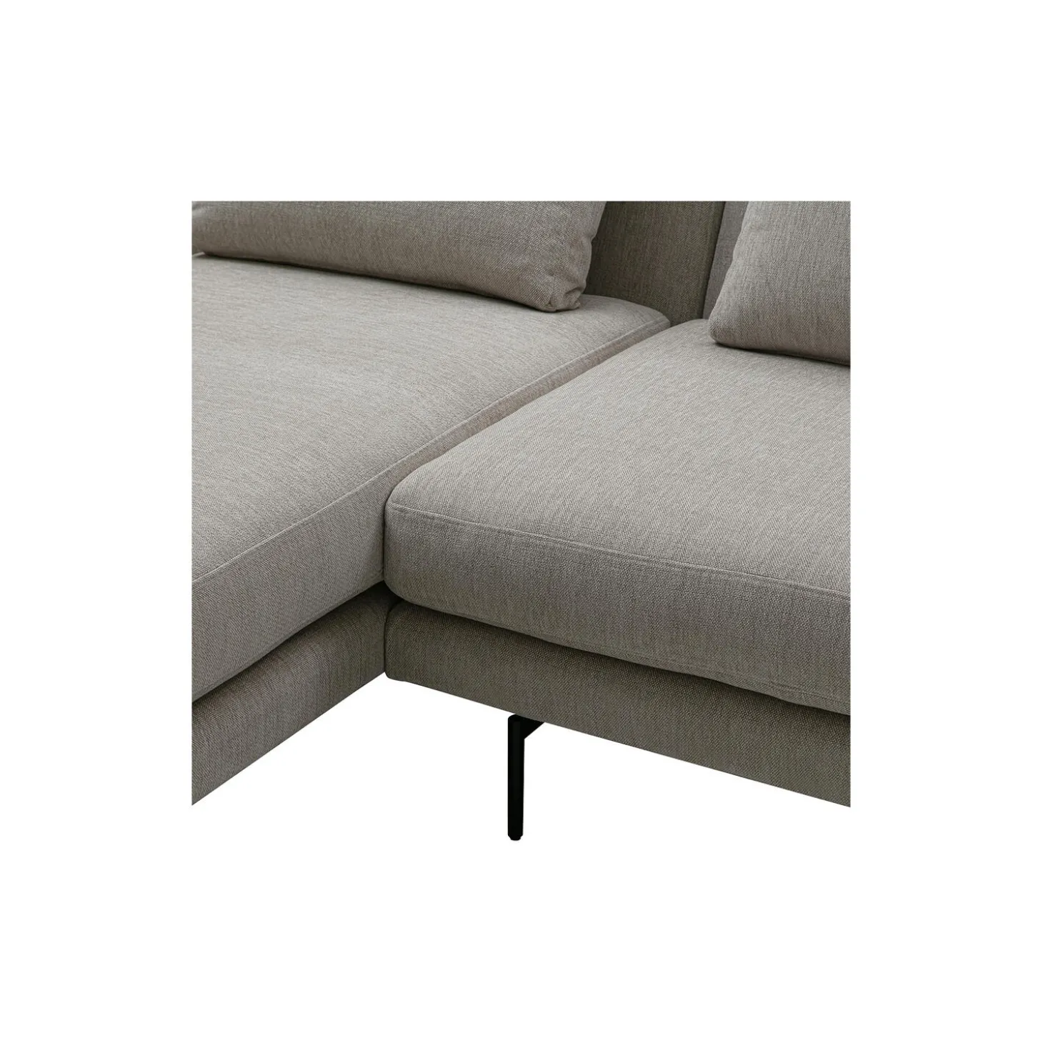 Edge V2 sofa med venstrevendt chaiselong med polstring i Soft 02 tekstil og stel i pulverlakeret stål fra Wendelbo. Mål: H: 78 x L: 289 x D: 100-229 cm. Siddehøjde: 40 cm. Design: Lars Wendelbo.