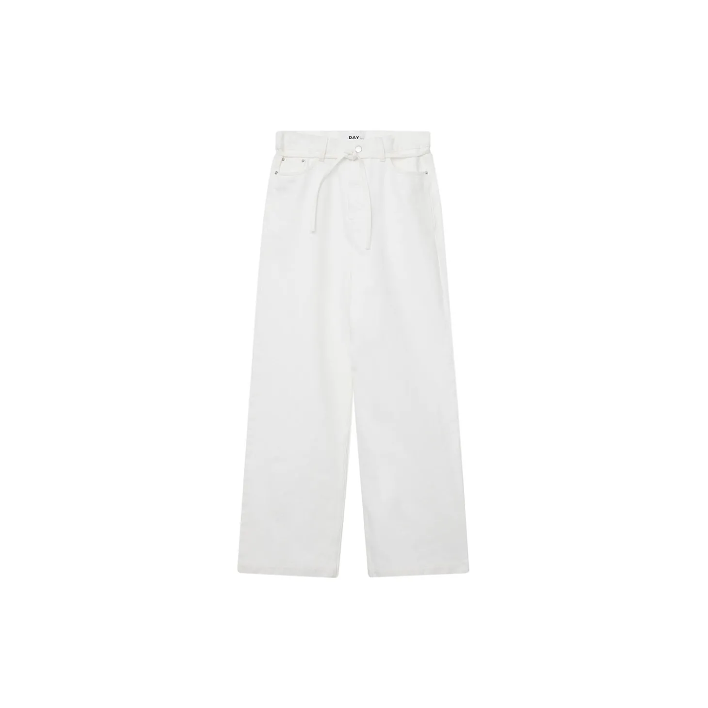 These low-rise, straight-leg jeans feature five pockets, a zip fly with button closure, and a removable tie belt at the waist. The jeans have a loose fit.