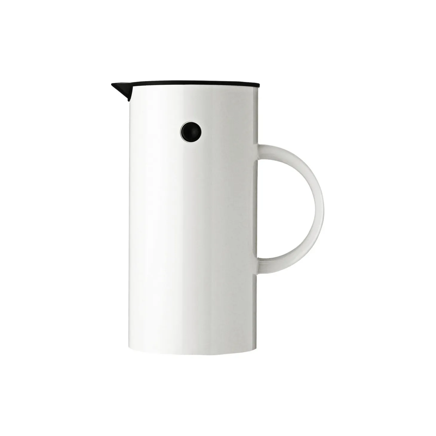 EM77 termokanden i stål på 0,5 liter, designet af Erik Magnussen i 1977, er med sin unikke vippeprop et designikon, kendt og elsket over hele verden. Kanden kan anvendes til kaffe og te og den isolerende glasindsats sikrer, at drikken holder sig varm i mange timer – eller kold, hvis kanden bruges til fx iste. Udover vippeproppen medfølger også et picnic skruelåg, så kanden let kan transporteres med indhold.