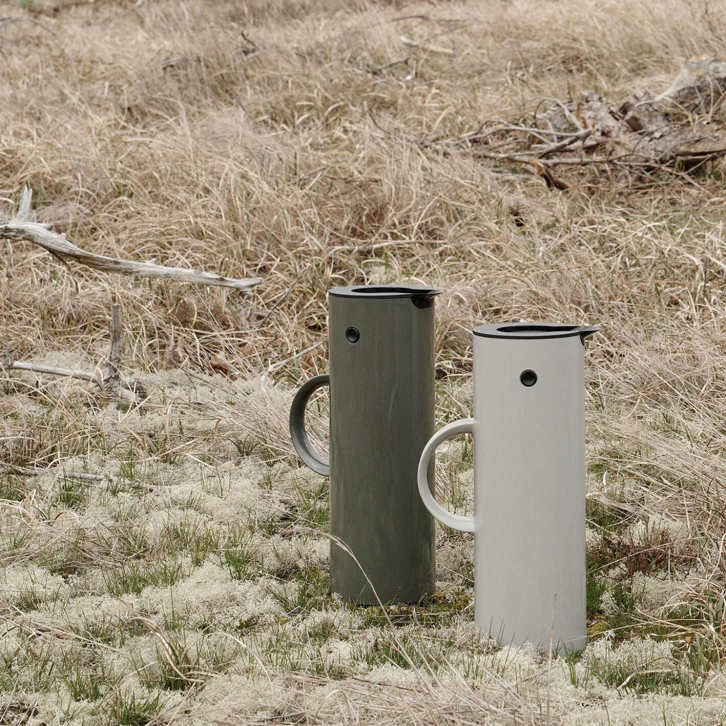 EM77 termokanden, designet af Erik Magnussen og produceret i Danmark siden 1977, er med sin unikke vippeprop et designikon, kendt og elsket over hele verden. Kanden på 1 l. kan anvendes til kaffe og te og den isolerende glasindsats sikrer, at drikken holder sig varm i mange timer – eller kold, hvis kanden bruges til fx iste. Udover vippeproppen medfølger også et picnic skruelåg, så kanden let kan transporteres med indhold.