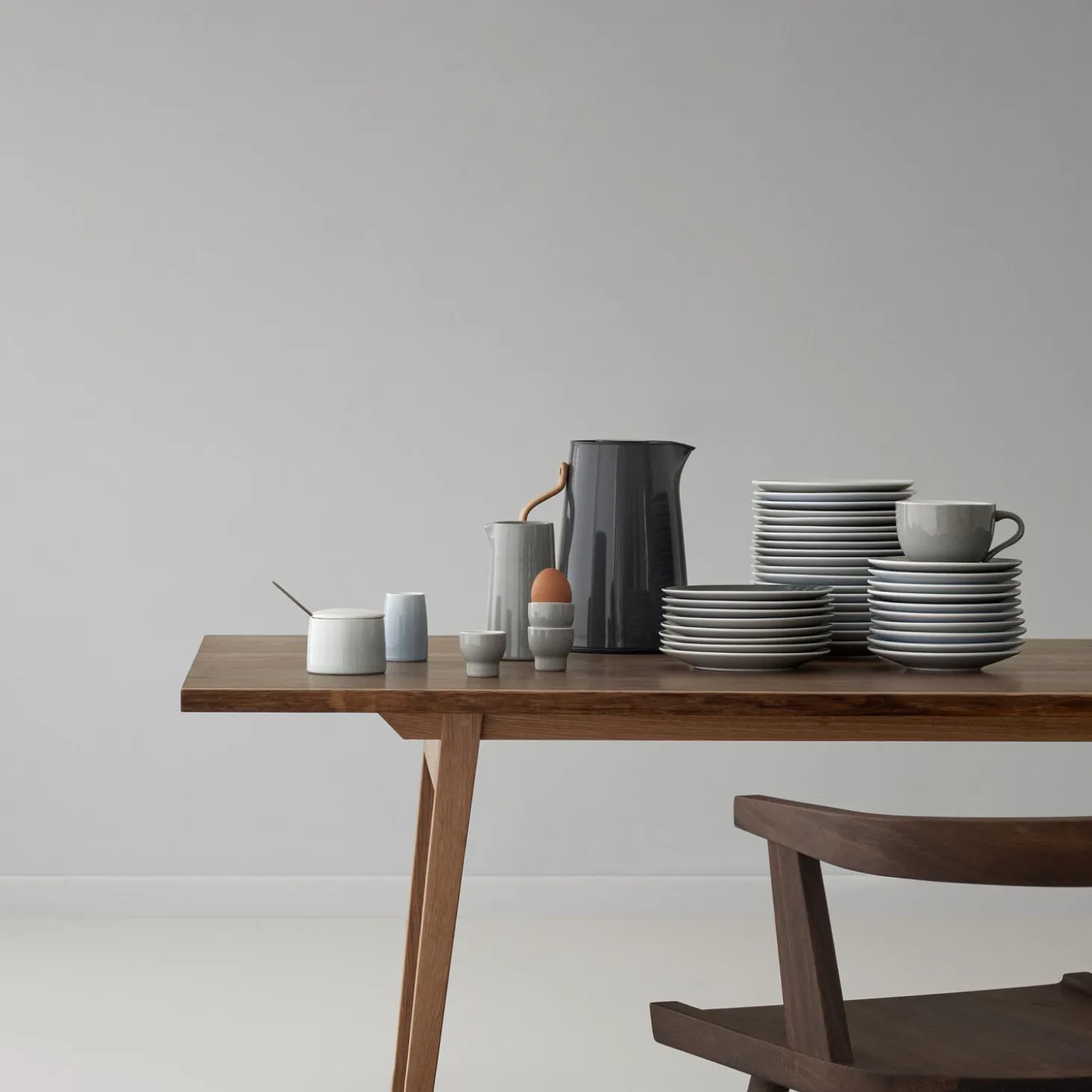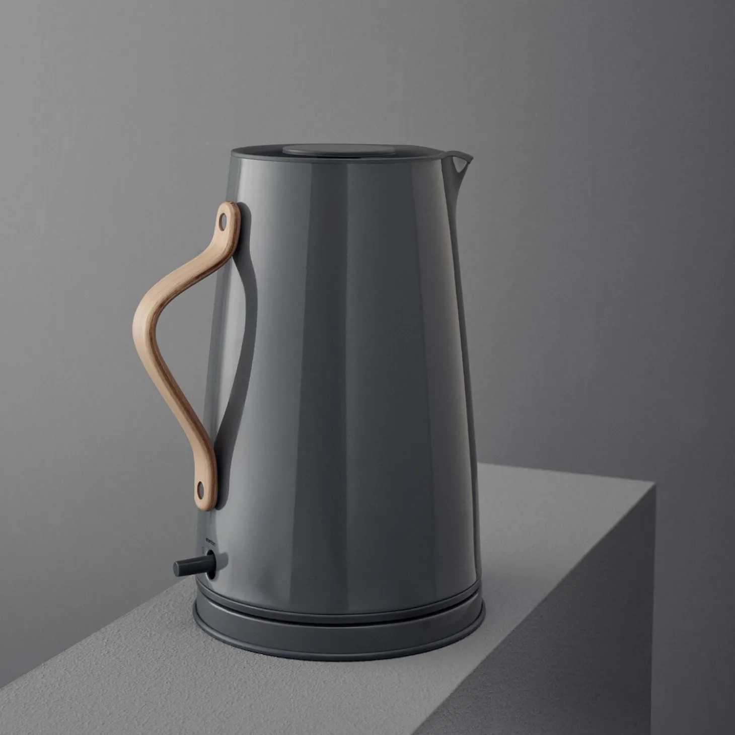 Forskøn hverdagen med Emma – Steltons prisvindende te- og kaffeserie. Emma elkedlen er en æstetisk, flot stålkande med rene linjer, der i mørk grå matcher resten af seriens tone-i-tone nuancer. Det formspændte bøgehåndtag giver elkedlen et distinkt nordisk udtryk. Den ledningsfri elkedel kan rumme 1,2 L. og er forsynet med udtageligt kalkfilter, tørkogningssikring og automatisk slukning ved kogepunktet.