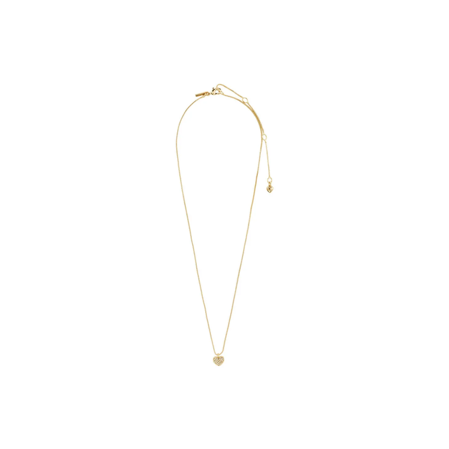 Wear your heart with sparkle! Slank guldbelagt halskæde med et lille hjertevedhæng, fyldt med funklende Preciosa krystaller, der giver et romantisk og elegant touch til dit look. Perfekt til både hverdag og særlige moments, hvor den tilføjer et hint af shine. Brug den alene for et understated statement eller mix med flere kæder for et trendy layered look. Dit nye go-to piece til enhver occasion! Halskæden måler 40 cm + 9 cm forlængerkæde og er fremstillet af 97% genanvendt materiale med kærlighed til vores planet.