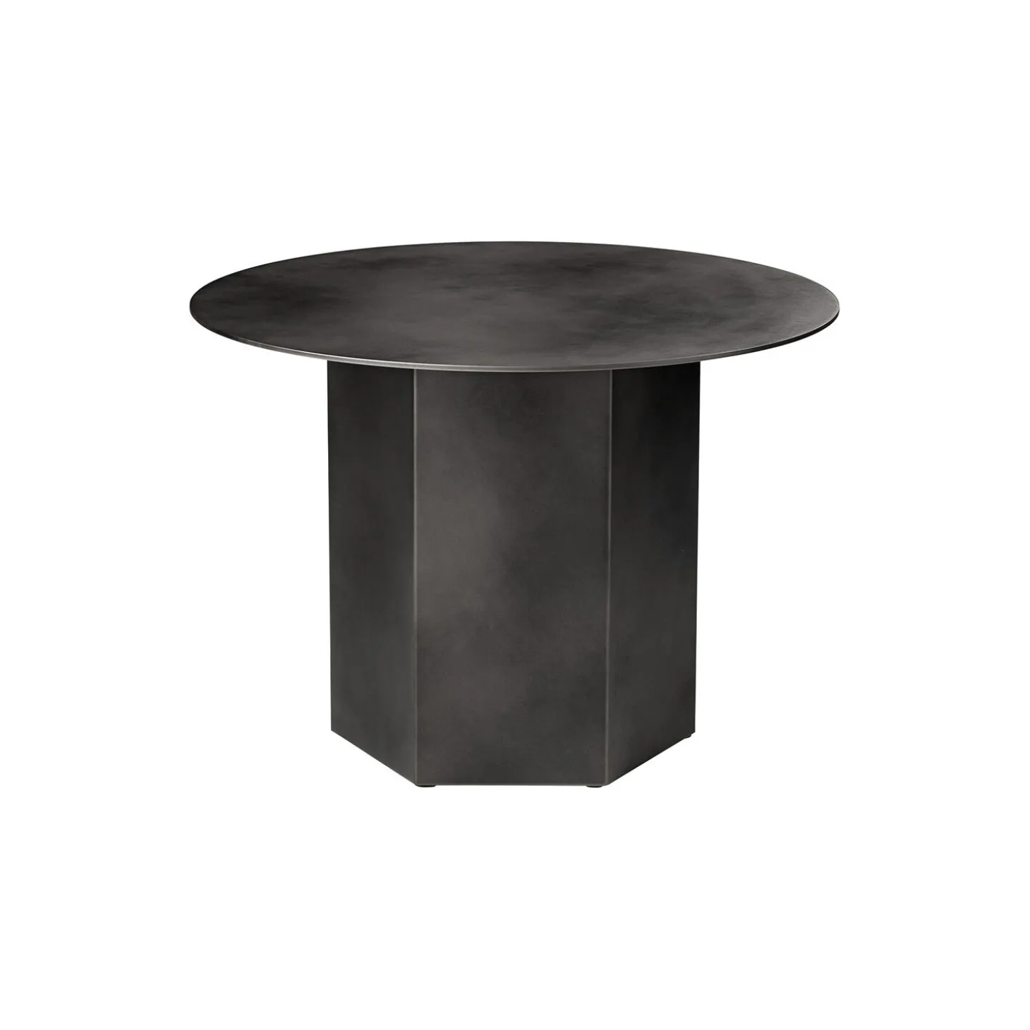 Epic Coffee Table i rustfrit stål og galvaniseret stål fra GUBI. Farve: misty grey. Mål: H: 42 x Ø 60 cm. Design: GamFratesi.