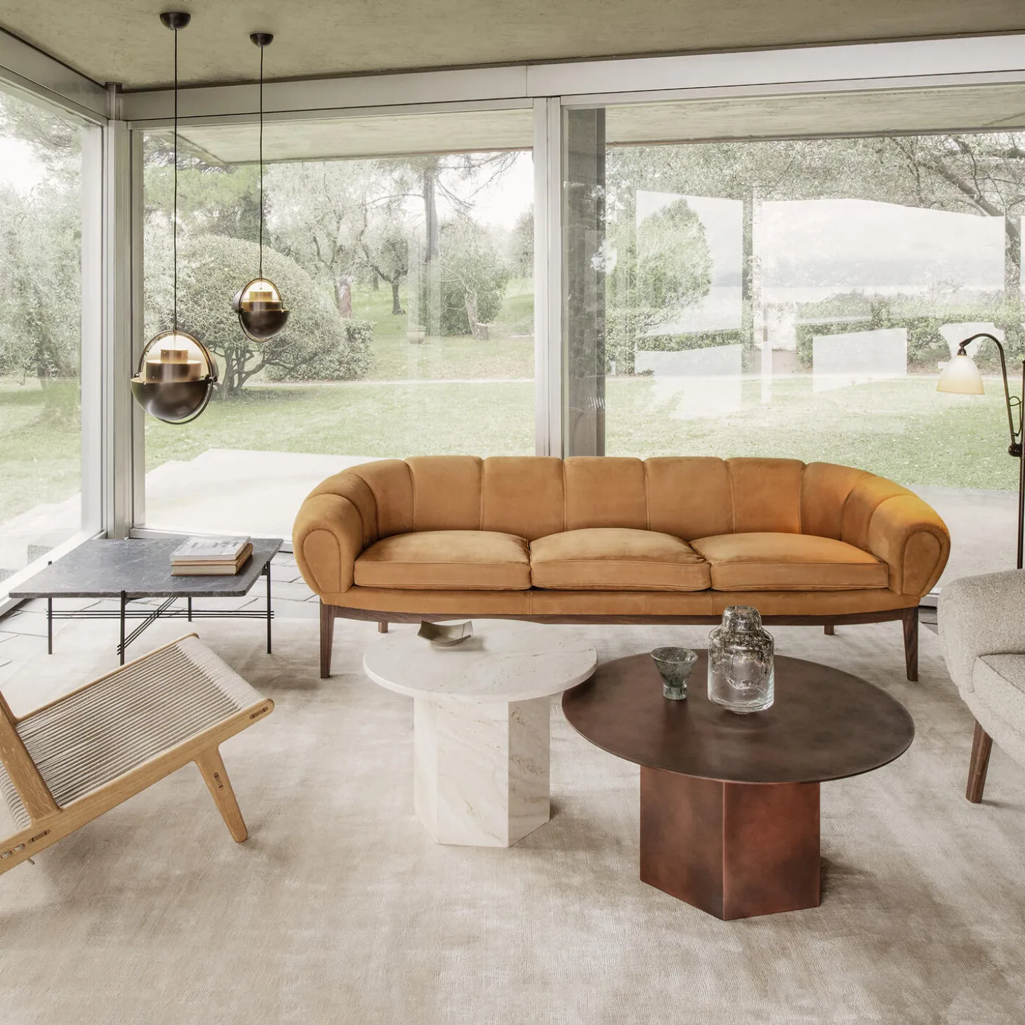 Epic Coffee Table i travertin fra GUBI. Farve: neutral white. Mål: H: 42 x Ø 60 cm. Design: GamFratesi.