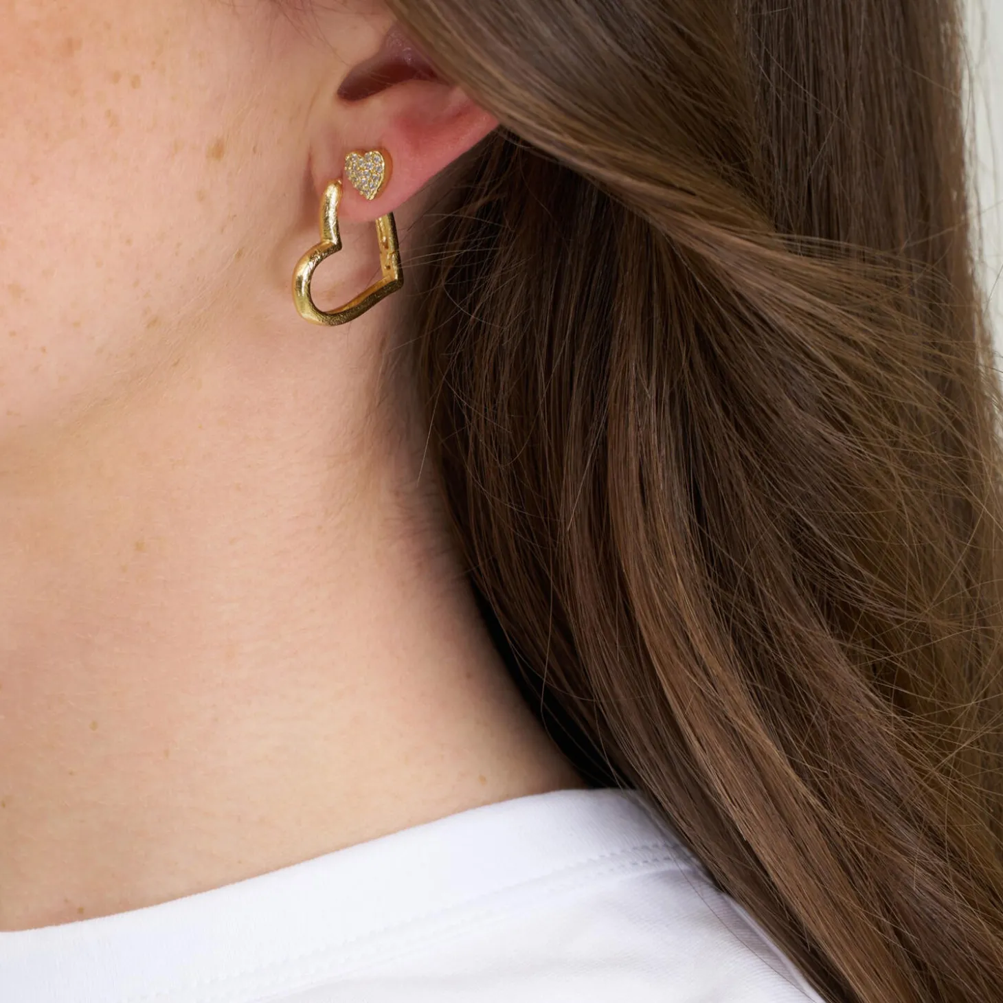 Heart post øreringe w. zircons fra Pure by Nat.