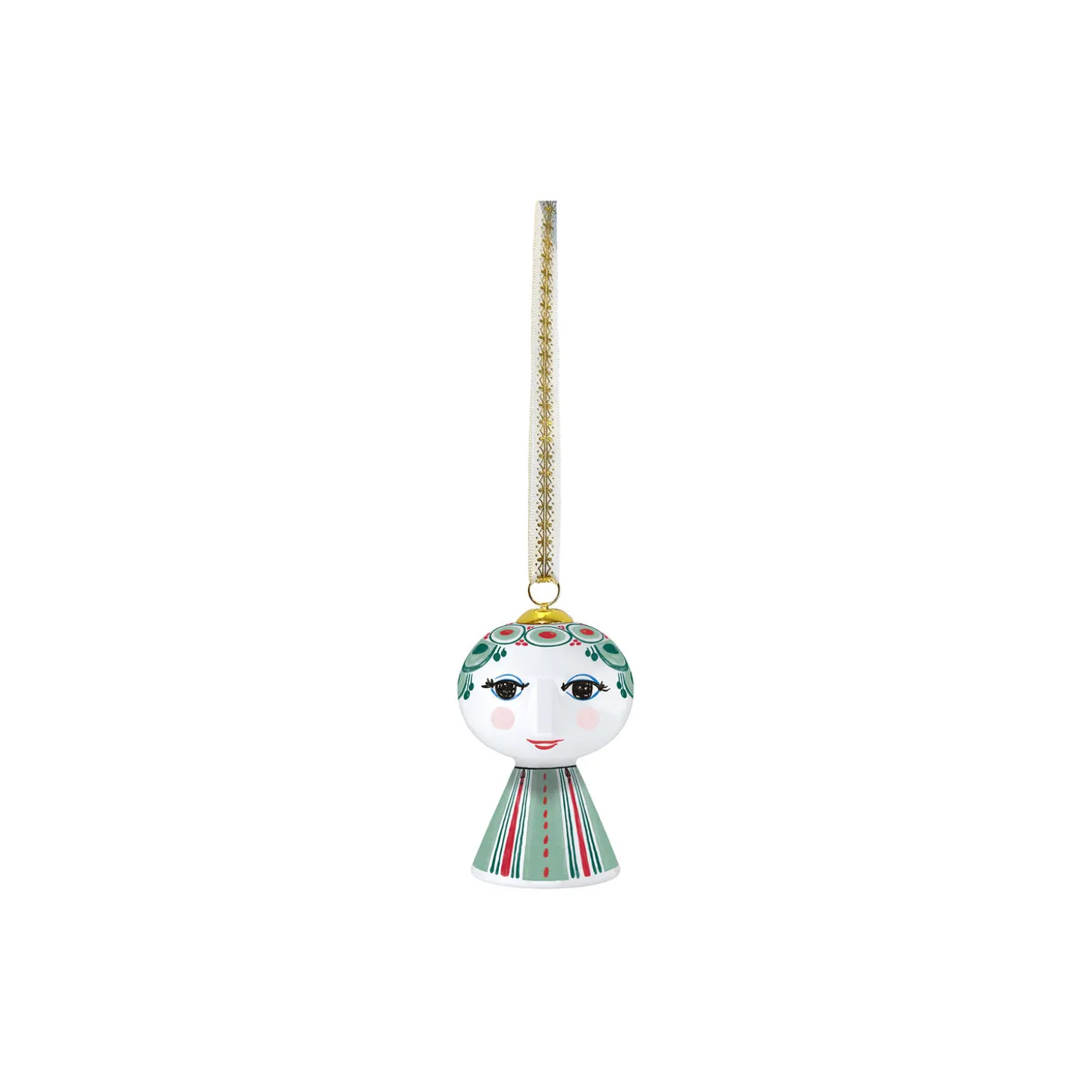 Udfold din farverige personlighed og skab plads til glæde med Bjørn Wiinblads Eva. Så snart du inviterer Eva indenfor, vil du med den populære serie med Bjørn Wiinblads gennemgående streg øjeblikkeligt skabe plads til glæde overalt i hjemmet. Gennem hele sit virke udforskede Bjørn Wiinblad farver, former og mønstre, og med den ikoniske Eva-figur som ophæng kan nemt og dekorativt du lade kreativiteten få frit spil overalt i boligen. Bjørn Wiinblad repræsenterer alt, hvad der er skørt, skævt, kreativt og vidunderligt. Og med dette smukke Eva-ophæng i overvejende grønne nuancer inspireret af kunst fra Bjørn Wiinblads legendariske designarkiv får du hurtigt, enkelt og dekorativt skabt et en stemning af glæde og kreativitet, der strømmer ud i ethvert hjørne i dit hjem. Ophænget måler 7,5 cm i højden og er lavet af blankglaseret porcelæn med farvet decal og er inspireret af Bjørn Wiinblads originale Eva-univers, hvor brede hoveder med blomsterdekorationer og en kegleformet krop dannede grundstenene. Ansigtet med de mandelformede øjne og den spidse næse er Wiinblads oprindelige streg, og det farverige kjolemønster er en nyfortolkning af Bjørn Wiinblads illustrationer fra arkiverne. Med sit glade smil, de blussende kinder og farverige dekorationer rummer Eva på alle måder essensen af Bjørn Wiinblad som person og kunstner. Der er noget larger than life over hendes selvsikre, poetiske og drømmende fremtoning, der uanset størrelse gør hende til et statement piece, der fanger øjet i indretningen. Hun pynter og skaber glæde på juletræet, i vinduet og på grene, hvor hun hængende i bånd med guldprint med original Bjørn Wiinblad-dekoration lyser op og gør livet mere farverigt – præcis som Bjørn Wiinblad elskede det. Bjørn Wiinblad var en livsglad kunstner med en stor og farverig personlighed, der gik sine egne veje og ikke var bange for at drømme og tænke stort. Den sjæl mærkes også i Eva, der hviler i sig selv og inviterer os til at udtrykke vores egen stil og personlighed med fokus på kreative dekorationer. En ting er sikkert: Det bliver ikke kedeligt, når Eva flytter ind.