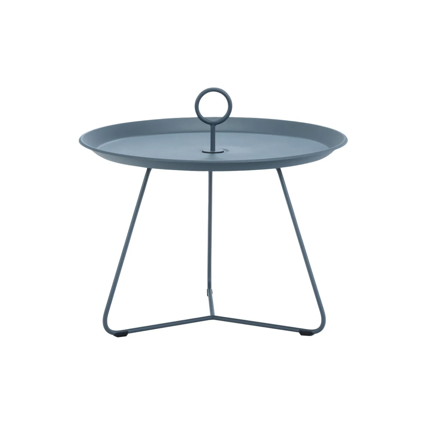 EYELET bakkebord i pulverlakeret metal fra HOUE. Farve: midnight blue. Mål: H: 43,5 x Ø 60 cm. Design: Henrik Pedersen.