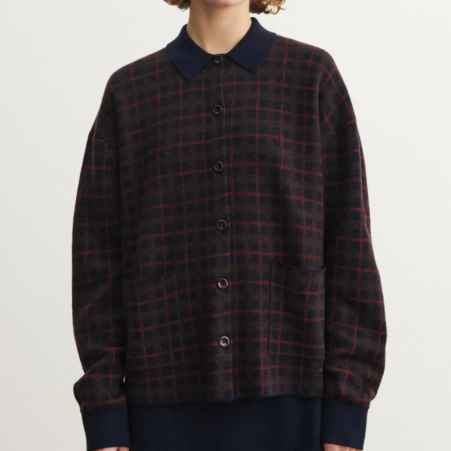 Denne strikkede jakke er lavet af ren merinould og har skjortekrave, knaplukning med knapper af corozonød, knapmanchetter og påsyede lommer. Den har en løs pasform og lavt skulderpunkt. Jakken er lavet af vores klassiske bløde merinogarn, som er blevet filtet for at opnå et enkelt og rent udtryk. Behandlingen gør, at jakken er let vindtæt og derfor både kan bruges som overgangsjakke eller som en varm cardigan. Jakken fås i en ternet og en ensfarvet version. Vores filtede merinould er OEKOTEX® og RWS-certificeret, fri for skadelig kemi og stammer fra får, der ikke er blevet udsat for mulesing. 100% OEKOTEX® og RWS certificeret merinould