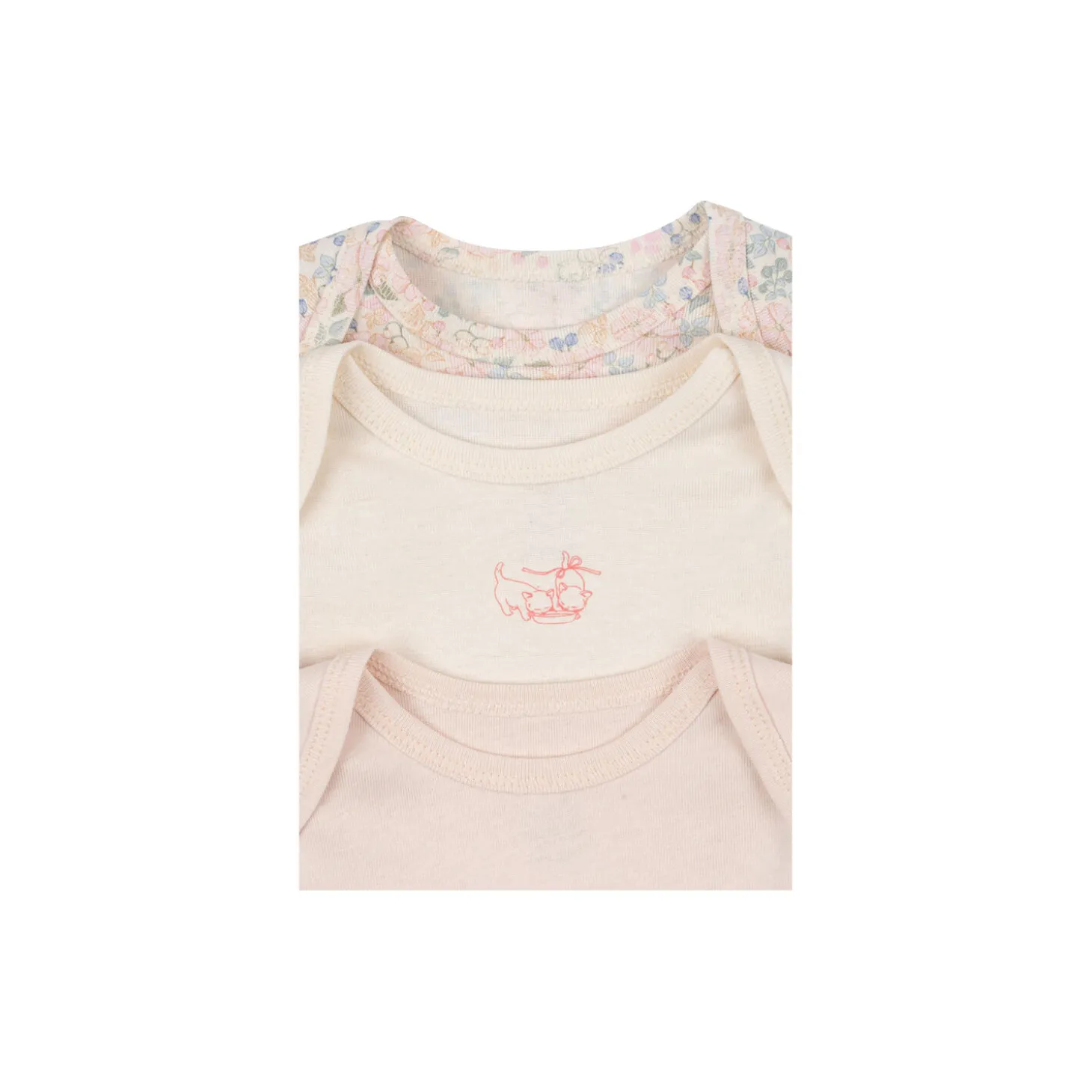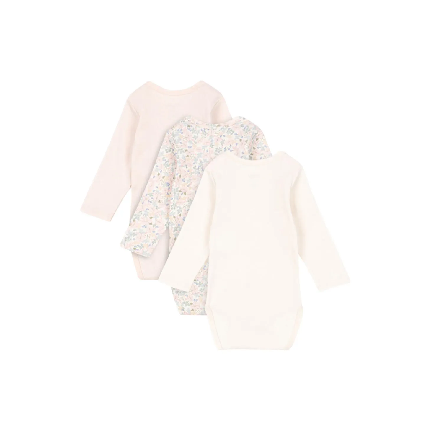 3-pack soft organic cotton bodysuits with long sleeves. Made in a flexible rib with a convenient envelope neck feature that makes it easy to take on and off, as well as easy push buttons between the legs for diaper changes.