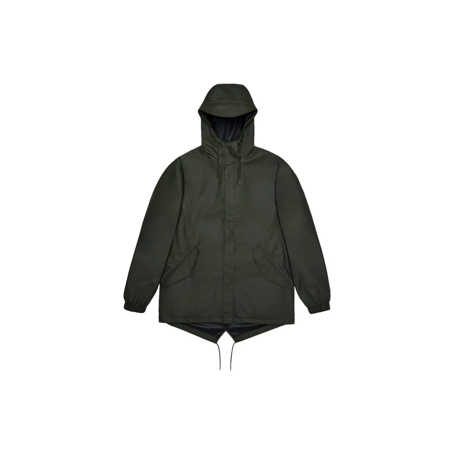 Fishtail Jacket er en unisex-regnjakke med et enkelt design og den karakteristiske trekantede slids med snøre bagpå.