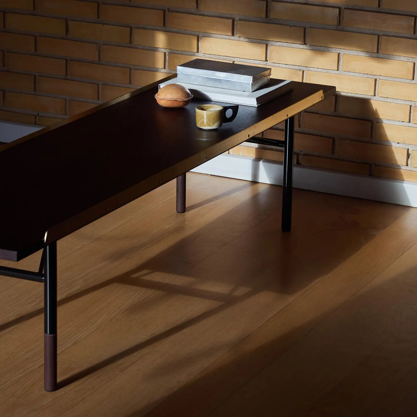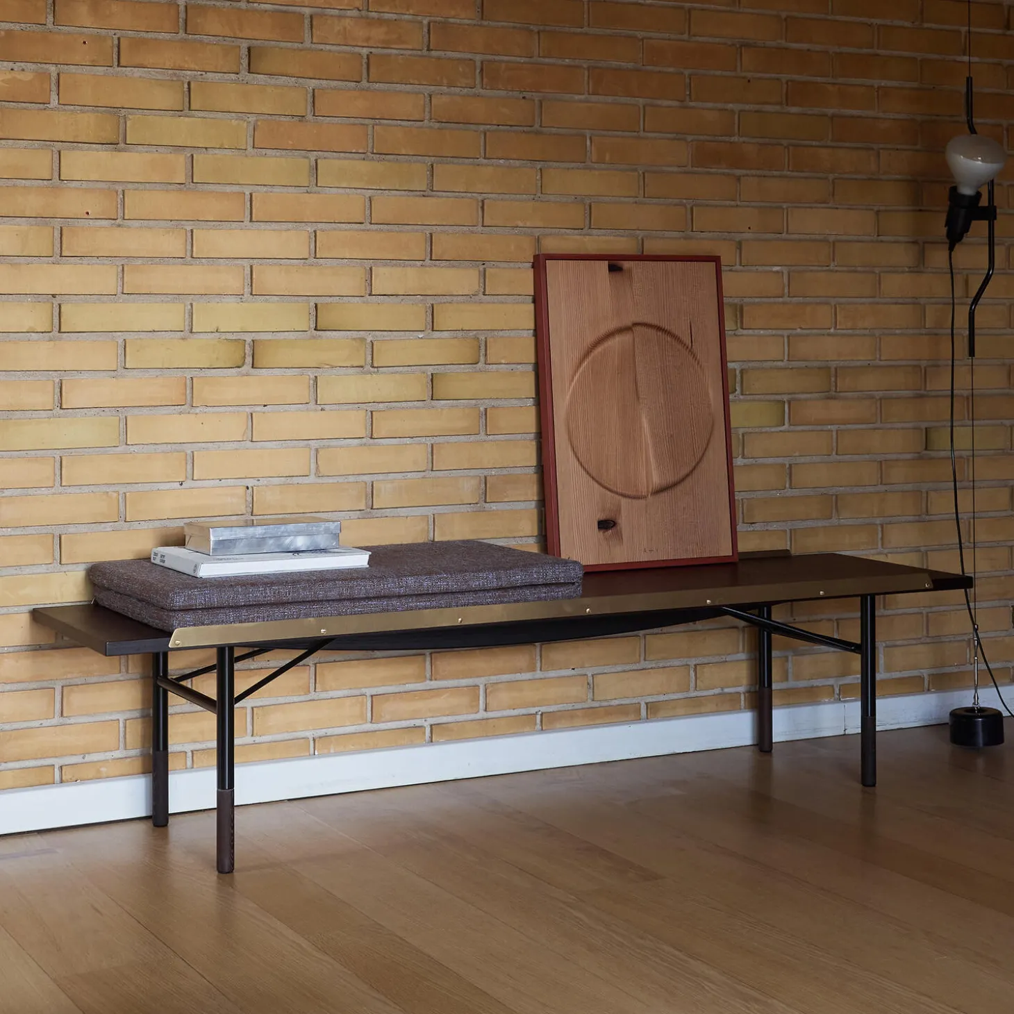 FJ5517 Bordbænken i wengé og messing fra House of Finn Juhl™. Farve: wengé/messing. Mål: H: 39 x L: 170 x B: 45 cm. Design: Finn Juhl.