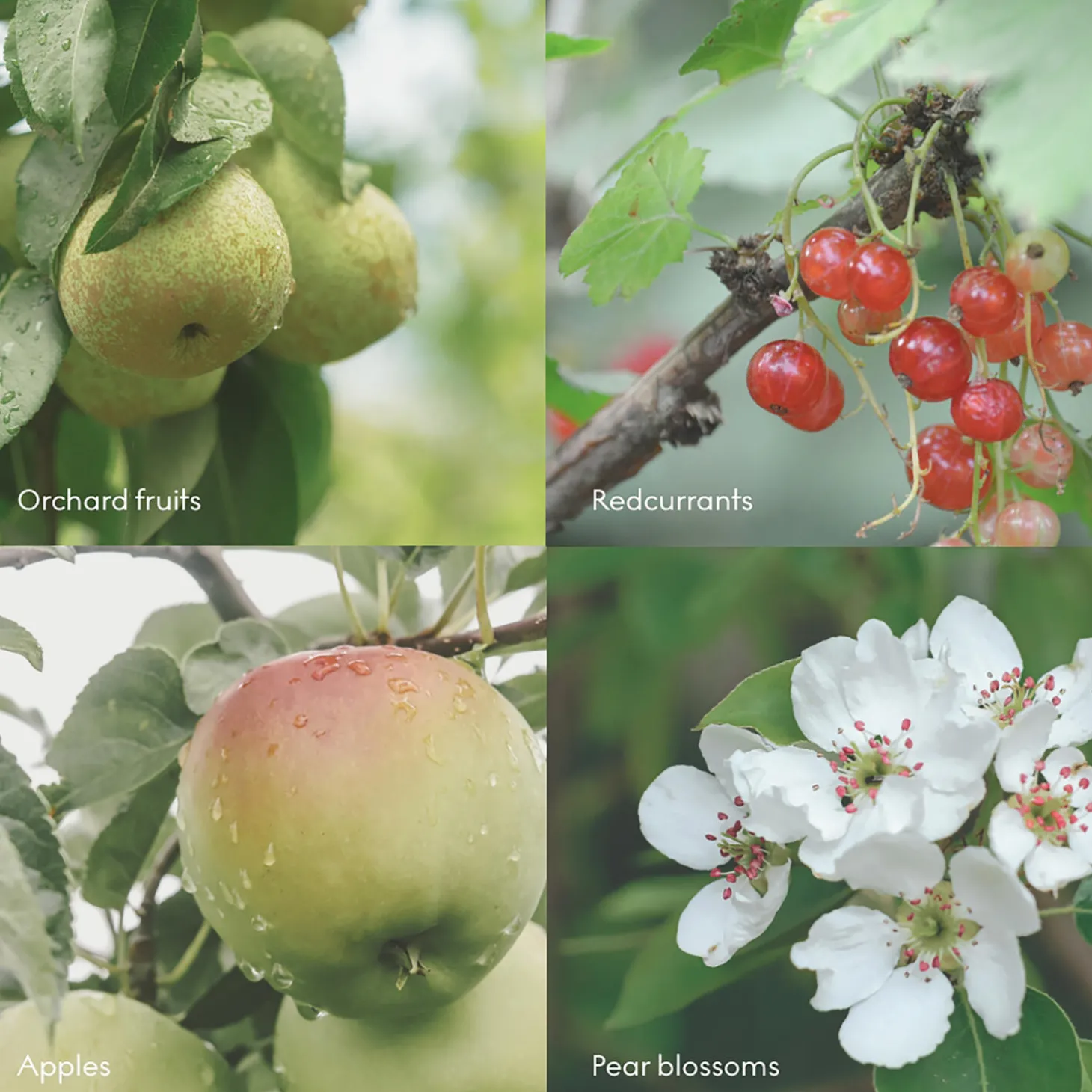 Duftnoter: æble- og pæreblomst, frugtplantage og ribs