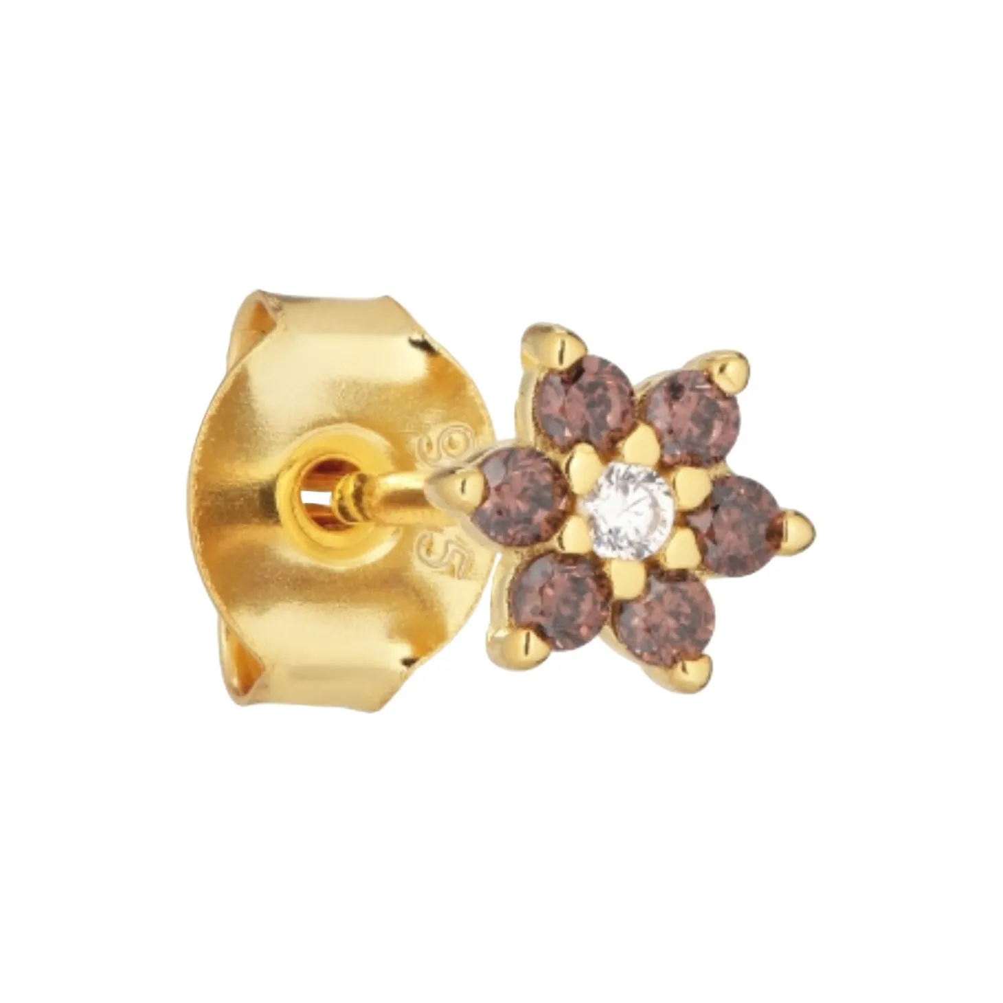 Lille ørestik med blomst med rhodolit farvede og en klar sten. Sælges enkeltvis.
