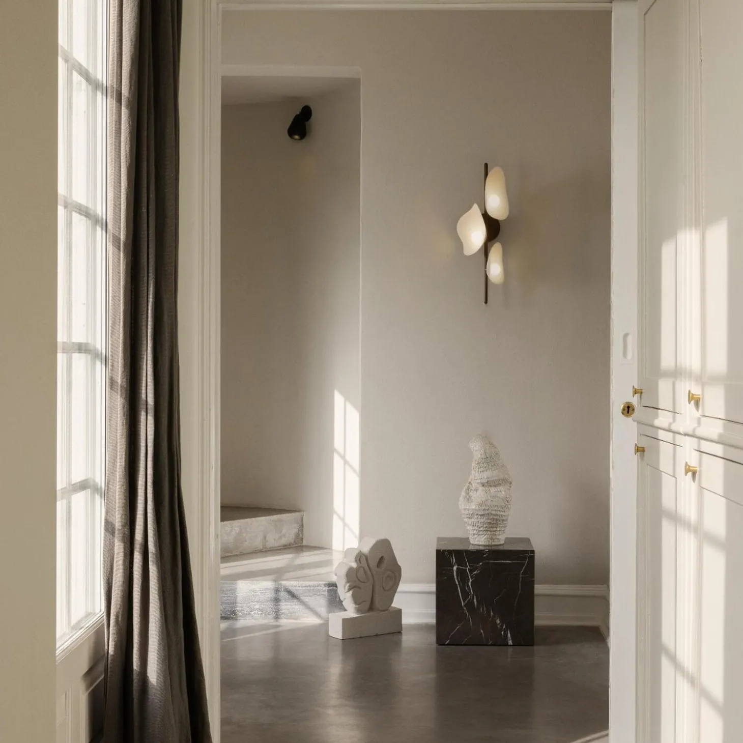 Florii 3 Wall er en aflang væglampe, der har et betagende formsprog. Den lineær metalstang i dark bronze, give en dyb kontrast til de hvide metalskærme, der udspringer med en varm og indbydende glød. Florii 3 Wall’s skulpturelle udtryk egner sig godt til halls og badeværelset, hvor den indrammer spejlet med sin yndefulde tilstedeværelse og med det integrerede LED, der giver effektiv og langtidsholdbar belysning, der nemt kan udskiftes uden værktøj.