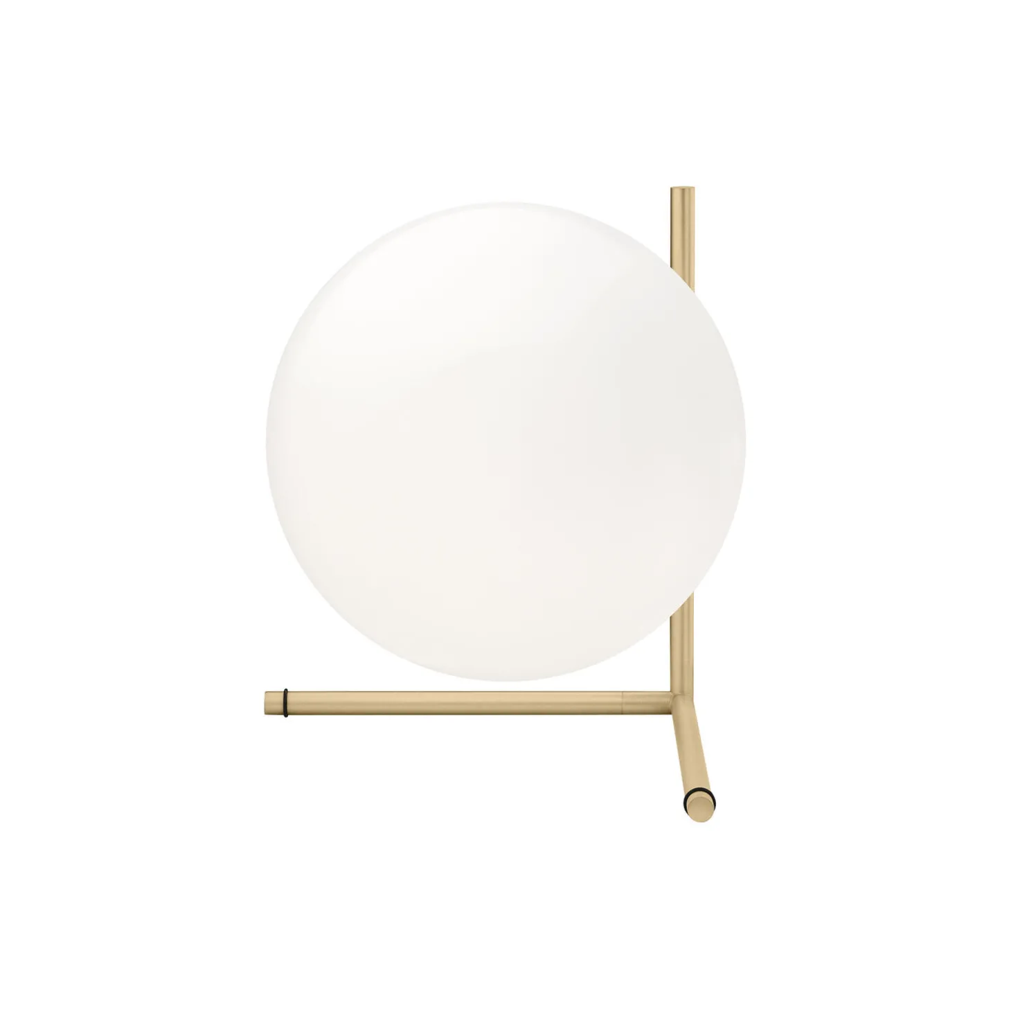IC T2 bordlampe i børstet messing og mundblæst glas fra Flos. Farve: messing. Mål: 48x dia.: 20 cm. Design: Michael Anastassiades.