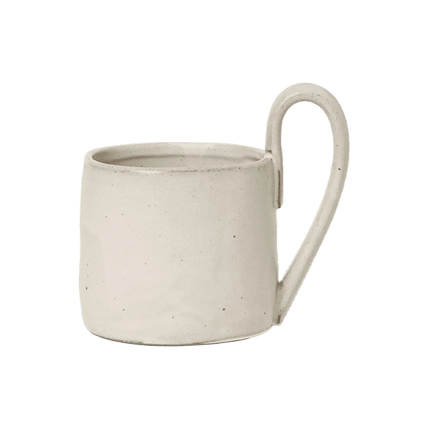 Flow er en serie af perfekt ufuldkommen bordservice skabt til en moderne følsomhed ved hjælp af traditionelle håndværksteknikker. Alle delene er glaseret, så der opnås et unikt udtryk. Denne dejligt rummelige kop har en karakterfuld aflang hank, der passer perfekt til dagens første kop kaffe.