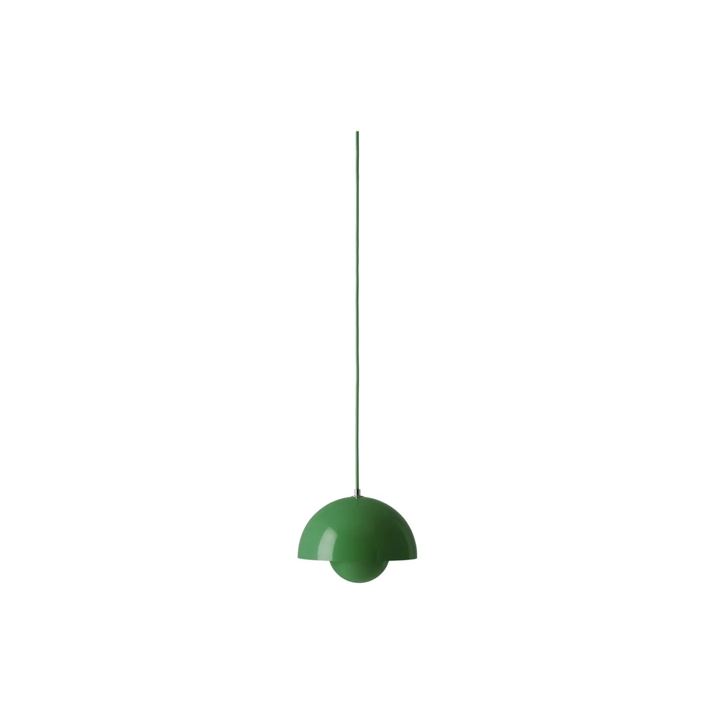 Flowerpot VP1 pendel i lakeret metal fra &Tradition. Farve: signal green. Mål: H: 16 x Ø 23 cm. Lyskilde: maks. 40W E27. Design: Verner Panton.