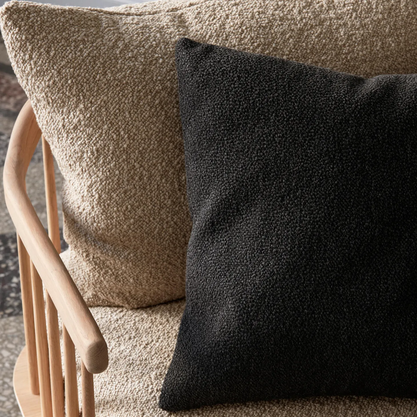 - Materiale: hynder polstret i Karakorum 003 tekstil fra Dedar og stel i olieret eg