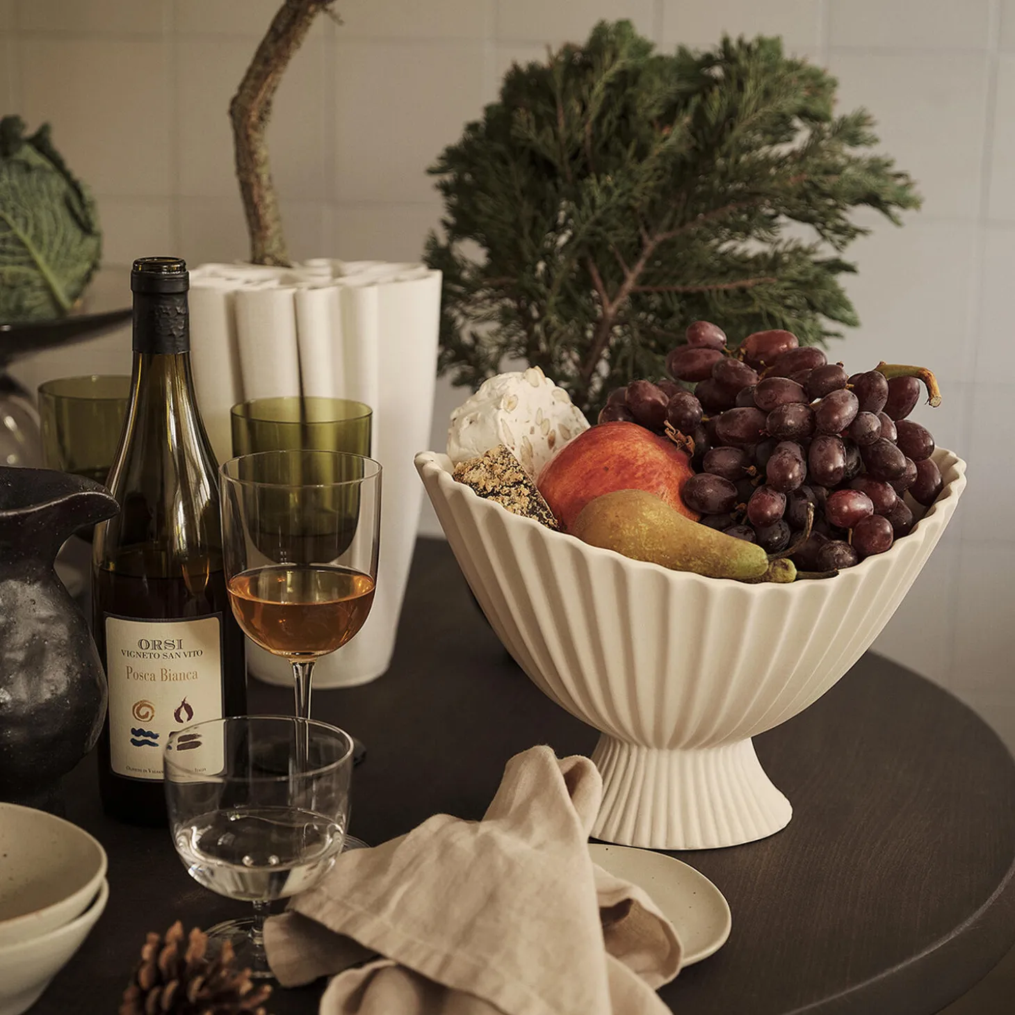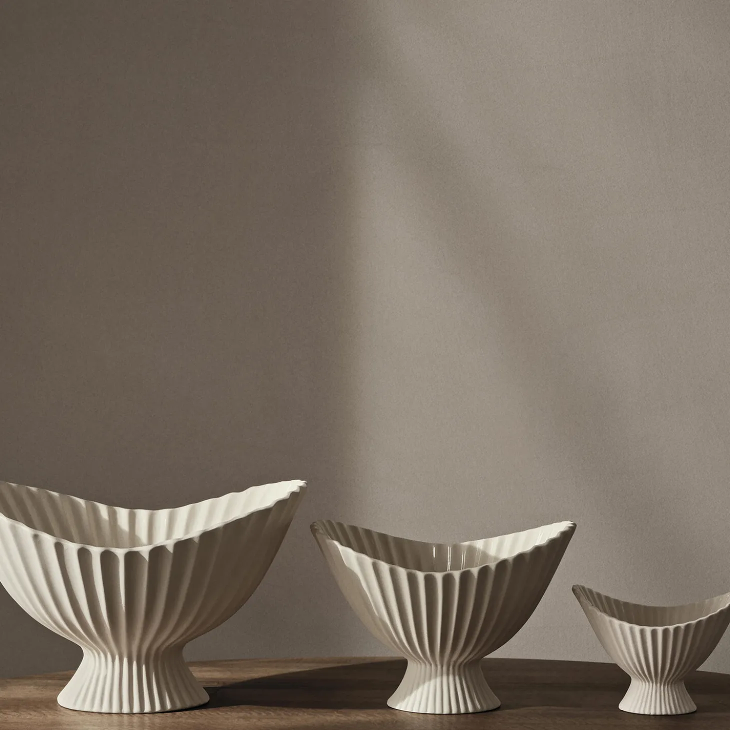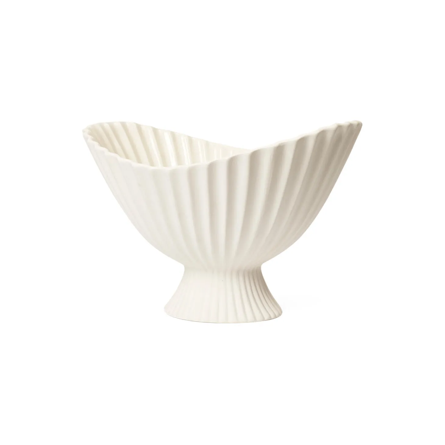 Den skulpturelle Fountain-skål i keramik løftes af en lille fod og har et blødt, plisseret udtryk, der øjeblikkeligt tiltrækker sig opmærksomhed. Skålens design er inspireret af formen på klassiske springvand, og den kan bruges til nips, servering af slik eller stå alene som en dekorativ og smuk genstand. Fountain Bowl har en mat yderside, mens indersiden har en klar glasur, hvilket gør den velegnet til opbevaring af meget forskelligt.