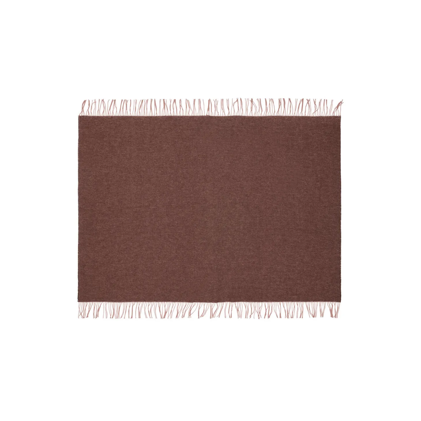 Franja er vævet i 50% alpaka og 50% uld. ‘Franjas’ smukke farver, ‘Butter Peach’ og ‘Burgundy Blue’, tilføjer plaiderne et smukt udtryk til hjemmets mange hyggelige kroge.