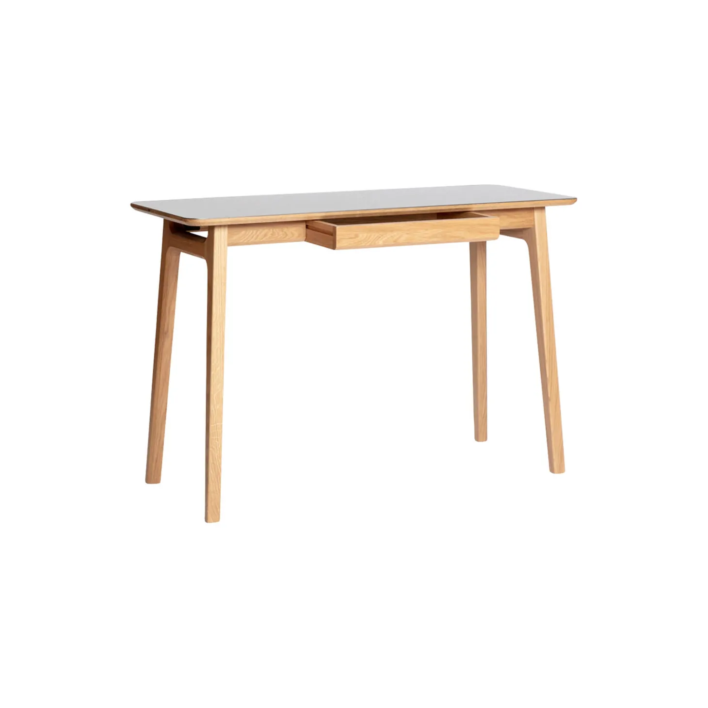 Freya Desk skrivebord i eg og linoleum fra Magnus Olesen Design. Farve: eg/grå. Mål: H: 74 x B: 110 x D: 45 cm. Design: Says Who.