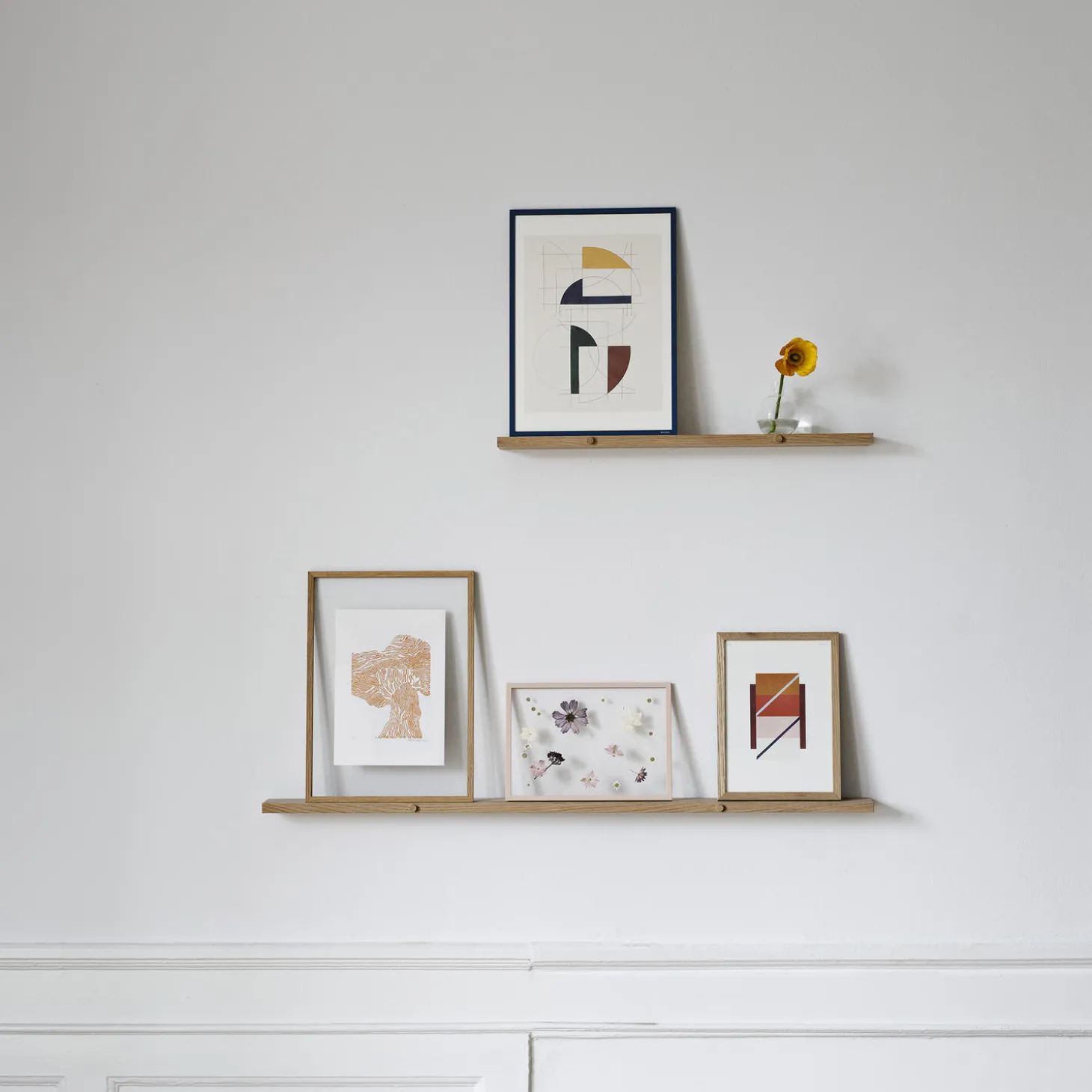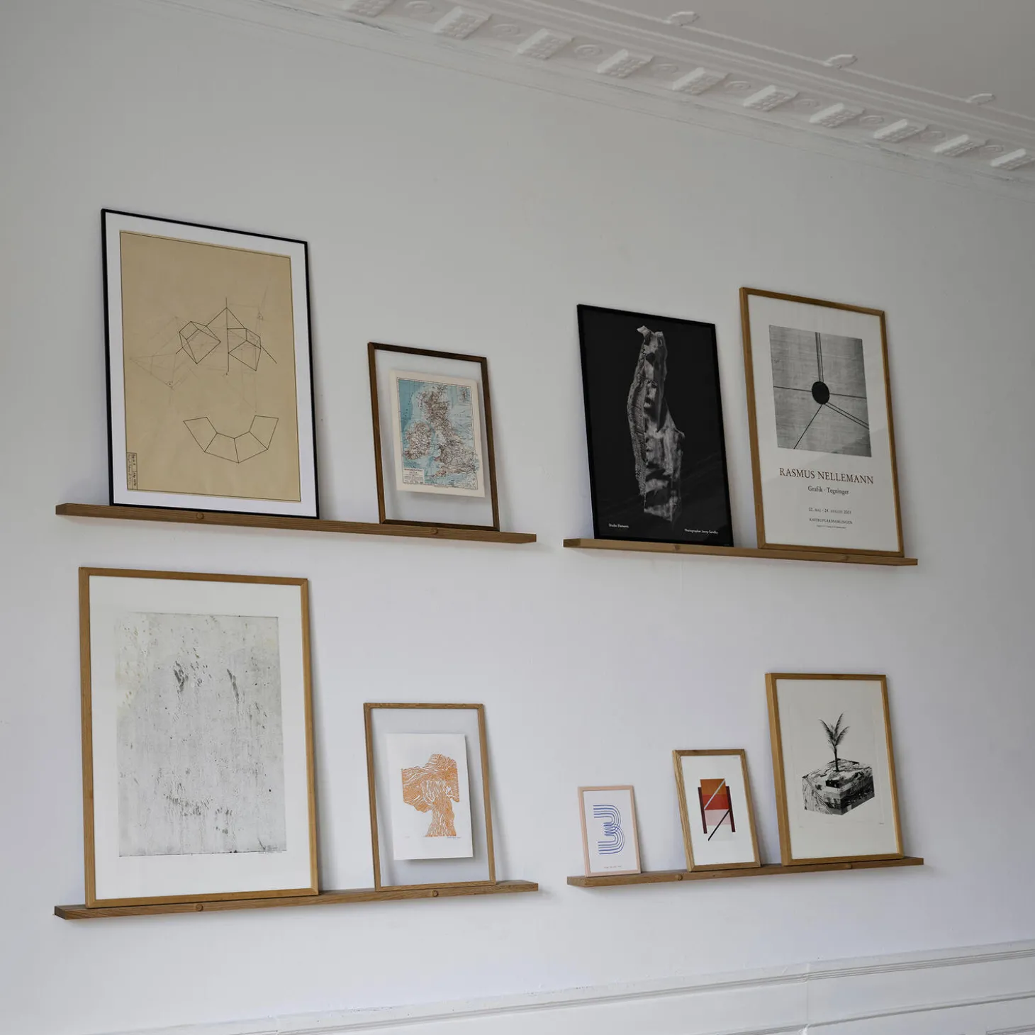 Gallery Shelf is designed as a single piece of solid oak with a clean look letting you decorate it with your favorite art pieces and objects, and easily change the look and feel of the wall.