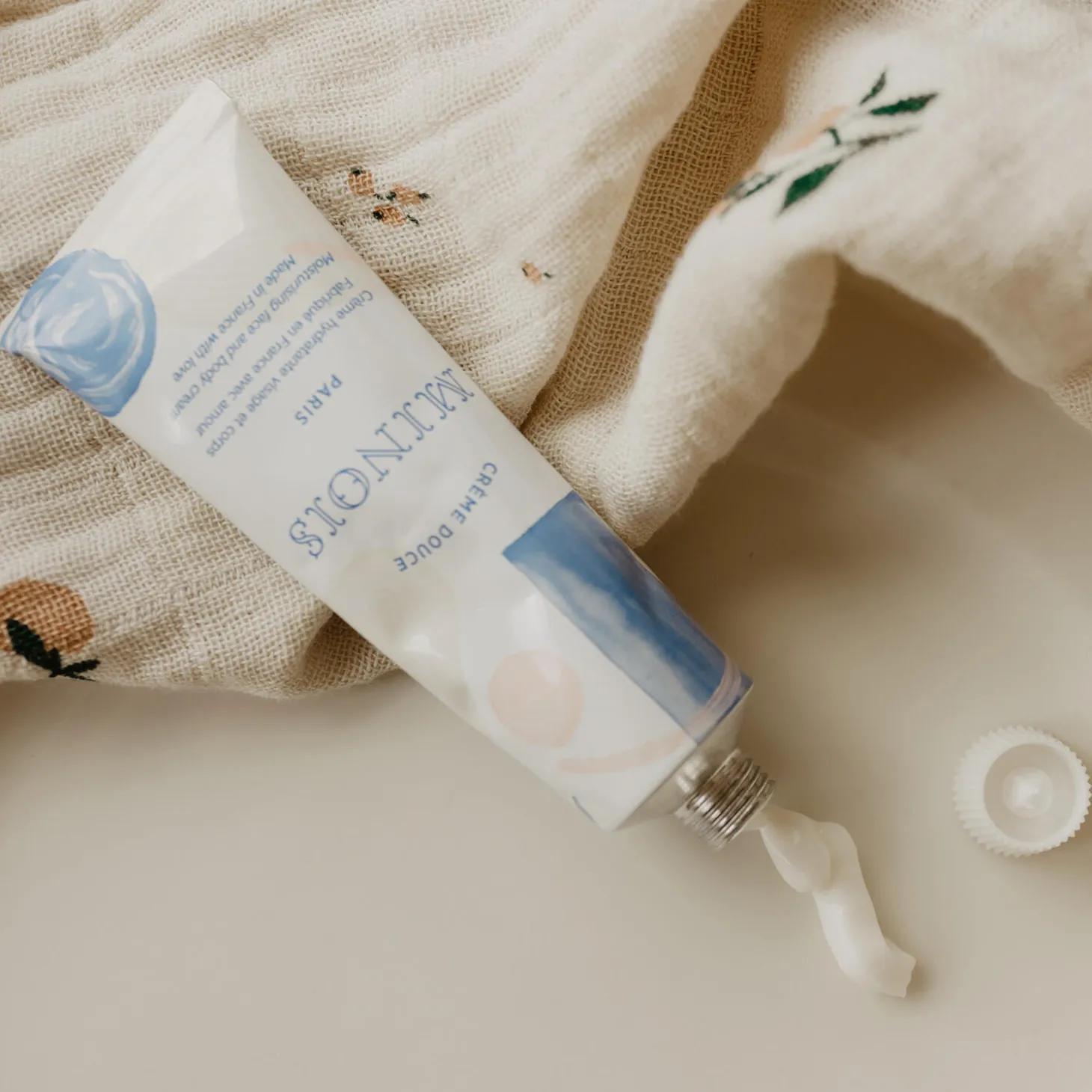 Fugtgivende ansigts- og kropscreme. Gentle Cream er specielt udviklet til at nære, beskytte og pleje små børns tørre hud. Den delikate duft af appelsinblomst efterlader huden blød og let parfumeret. Den naturlige formel indeholder fugtgivende og beroligende aktive ingredienser (sheasmør, sødmandelolie), som beroliger og reparerer sensitiv hud. Designet til brug fra fødslen, absorberes den cremede tekstur hurtigt uden at efterlade en fedtet fornemmelse. Ideel efter badet eller når som helst på dagen, er den et must-have til sensitiv hud. Velegnet fra fødslen – 98% naturlige ingredienser – 100% af vores aktive ingredienser er økologiske- Fremstillet i Frankrig. Varm en lille mængde creme op mellem dine hænder før brug. Påfør forsigtigt på ansigtet og kroppen. Velegnet fra fødslen og til daglig brug. Den praktiske emballage gør det nemt at have den med i tasken. Alle Minois Paris aktive ingredienser er produceret økologisk. Dermatologisk testet på følsom hud. Fri for parabener, sulfat, phenoxyethanol, silikone og farvestoffer.