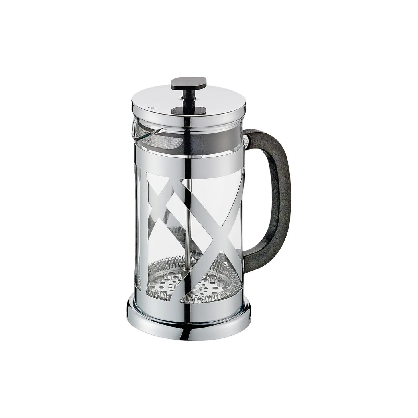 Fyld kanden lavet af varmebestandigt borosilikatglas med groftmalet kaffepulver. Hæld derefter varmt, ikke længere kogende vand over og læg låg på gryden. Efter en udbløvningstid på mindst fire minutter trykkes langsomt filterstangen ned. Færdig! Du kan transportere kaffemaskinen sikkert med det generøse håndtag