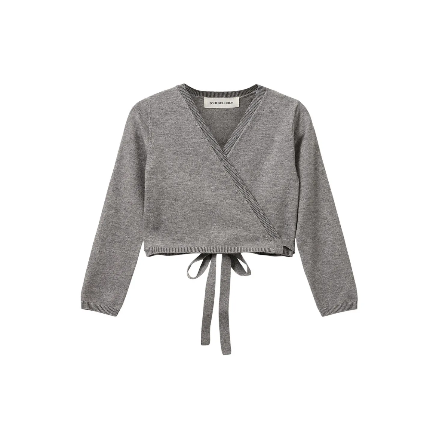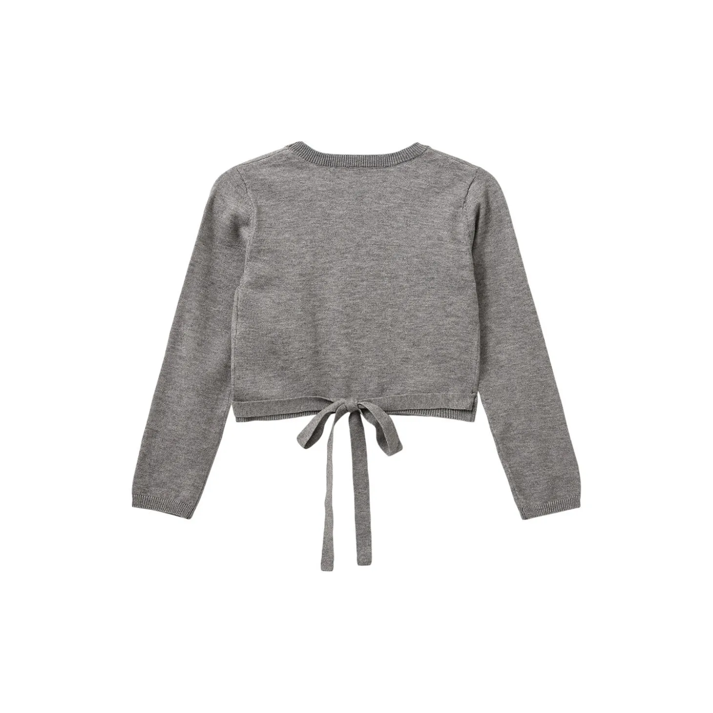 Cardigan med slå-om bindebåndslukning. Fremstillet i en blanding af viscose, polyester og acryl.