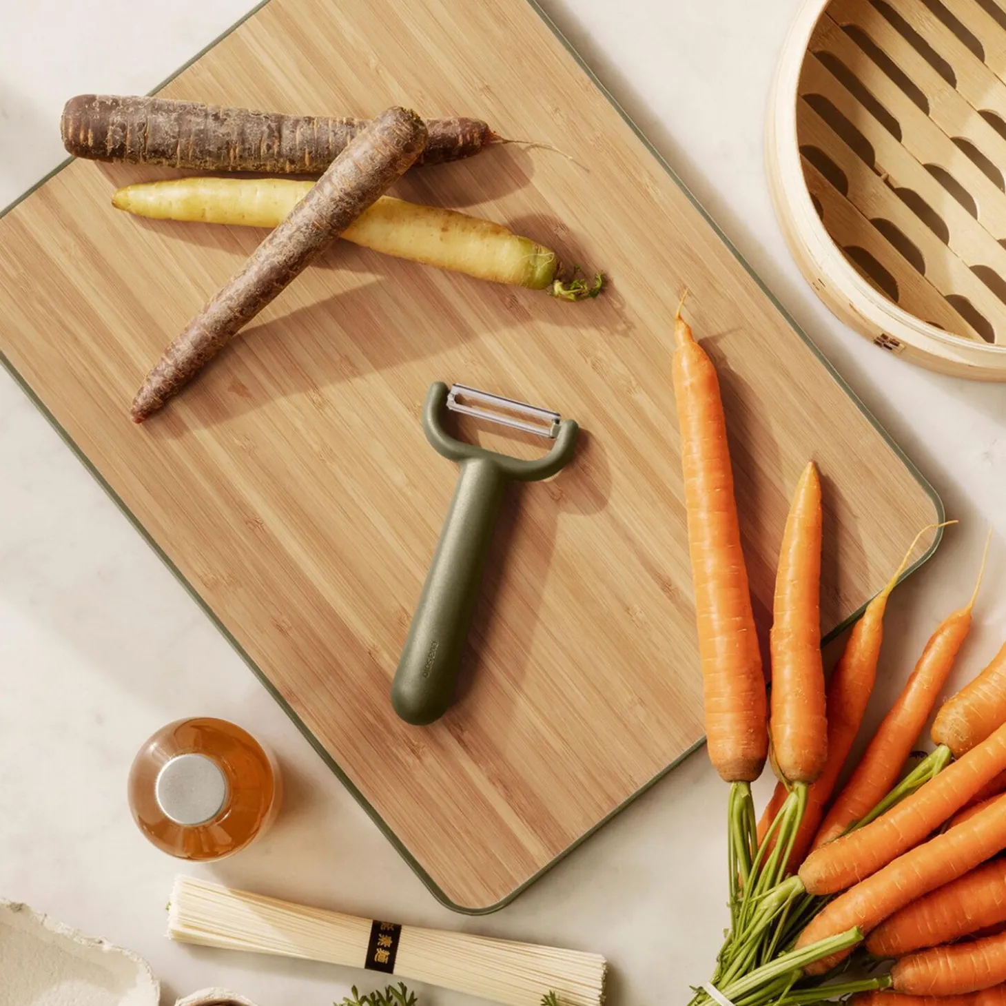 Det skarpe, fleksible skær arbejder i begge retninger, og skrælleren er velegnet til kartofler og grøntsager som asparges, agurk, gulerødder og courgetter. Det behagelige, afrundede greb ligger godt i hånden, og skrælleren kan bruges af både venstre- og højrehåndede. Tåler maskinopvask.