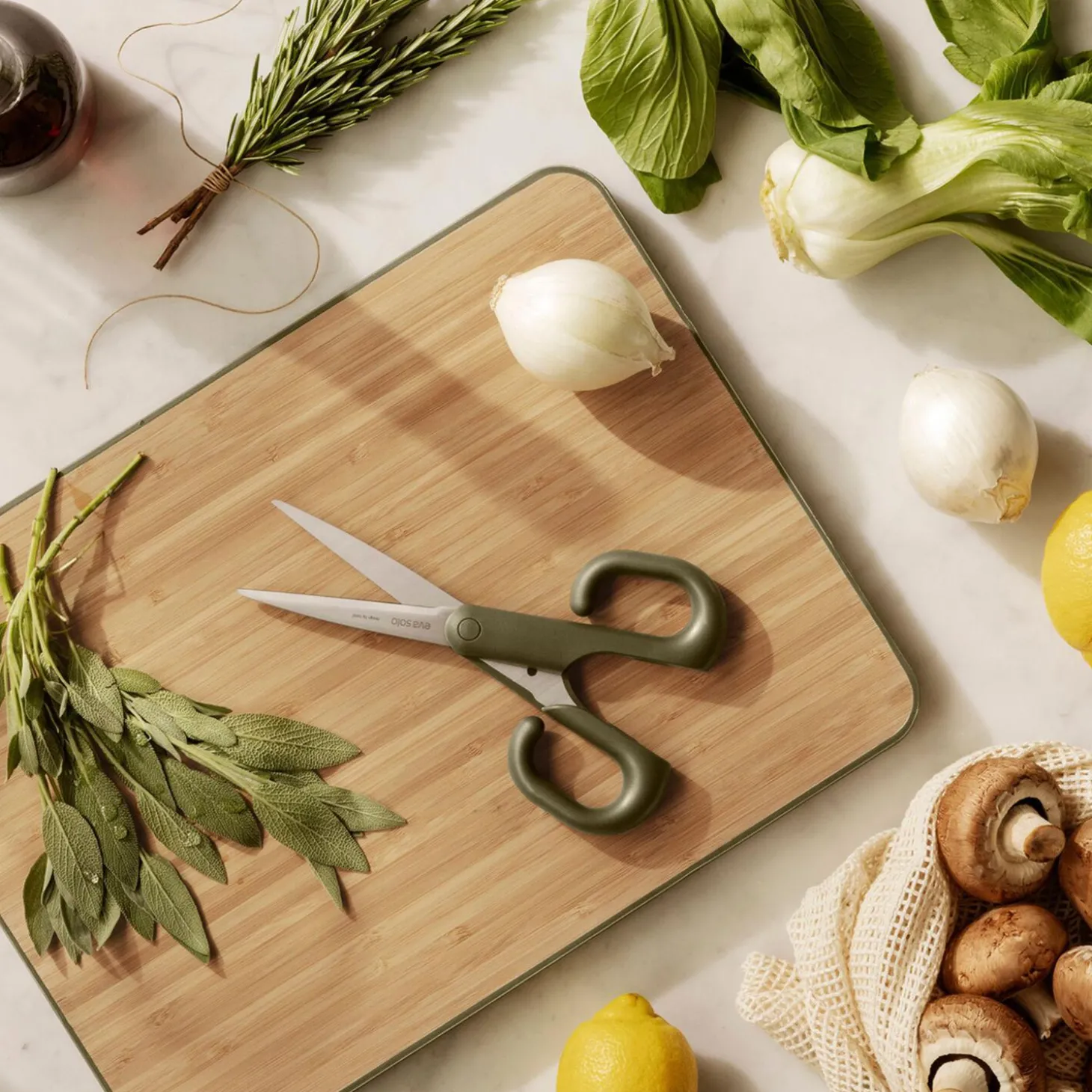 Den funktionelle køkkensaks er udstyret med to skarpe blade og et behageligt, afrundet greb, som ligger godt i hånden. Saksen kan bruges af både venstre- og højrehåndede Brug den f.eks. til at klippe krydderurter eller stykker af pizzaen. Tåler maskinopvask.