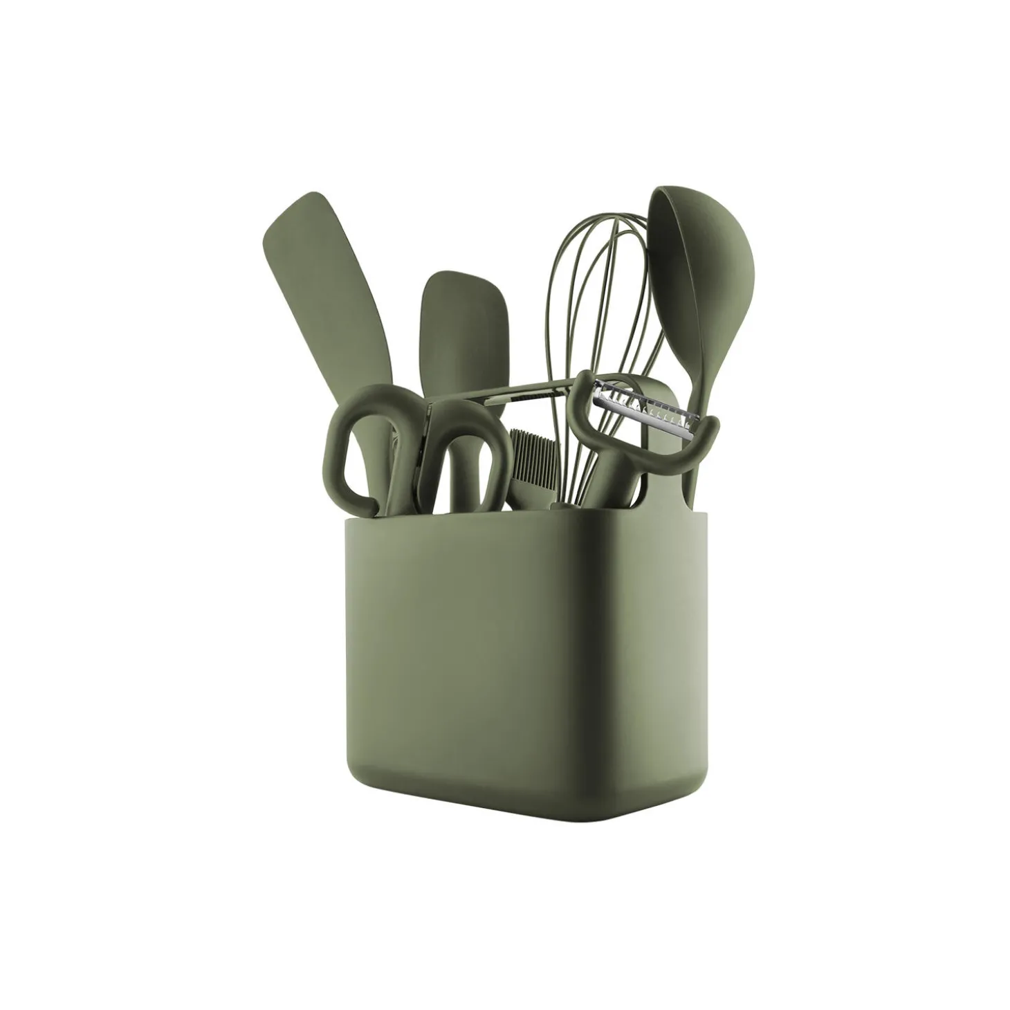 Green Tools’ Toolbox er en alsidig og praktisk opbevaringsløsning, der hjælper dig med at holde orden i dit køkken, kontor eller hobbyværksted. Med seks separate rum er Toolboxen perfekt til at organisere alt fra køkkenredskaber og opvaskesæt til kontorartikler og hobbyudstyr. Det indbyggede håndtag gør, at Toolboxen også kan bruges til at transportere dine ting. Designet er diskret og moderne, materialet tåler daglig brug og den kan endda rengøres i opvaskemaskinen for nem vedligeholdelse.