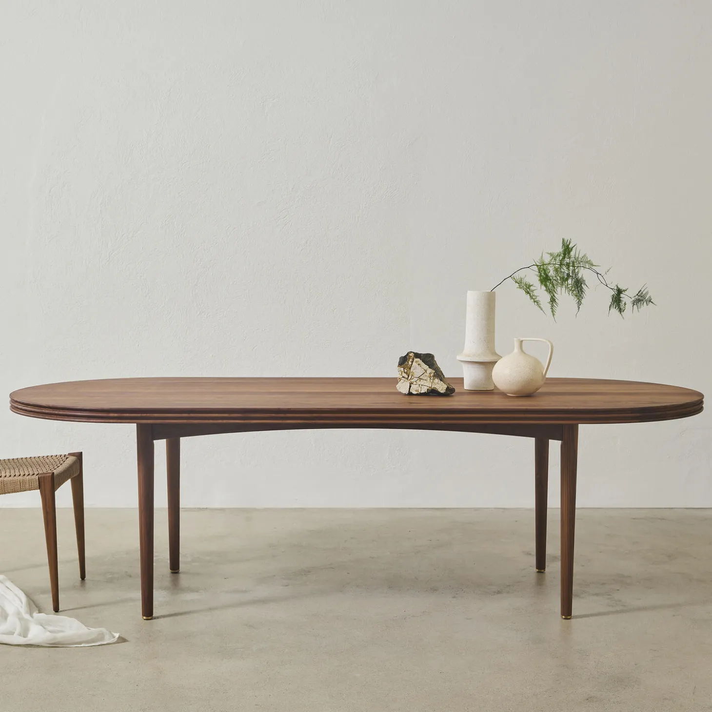 GROOVE COFFEE TABLE OVAL i olieret valnød fra dk3. Farve: olieret valnød. Mål: H: 30 x L: 120 x B: 50 cm. Design: Christian Troels.