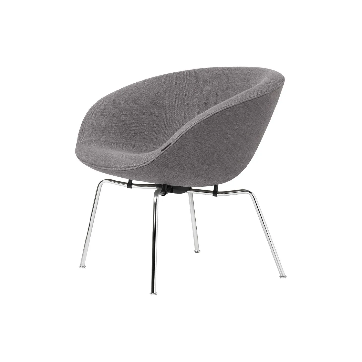 Gryden™ loungestol med betræk i Capture 4601 og stel i forkromet stål fra Fritz Hansen. Farve: mørkegrå. H: 70 x L: 75,5 x B: 60 cm. SH: 42,7 cm. Design: Arne Jacobsen.