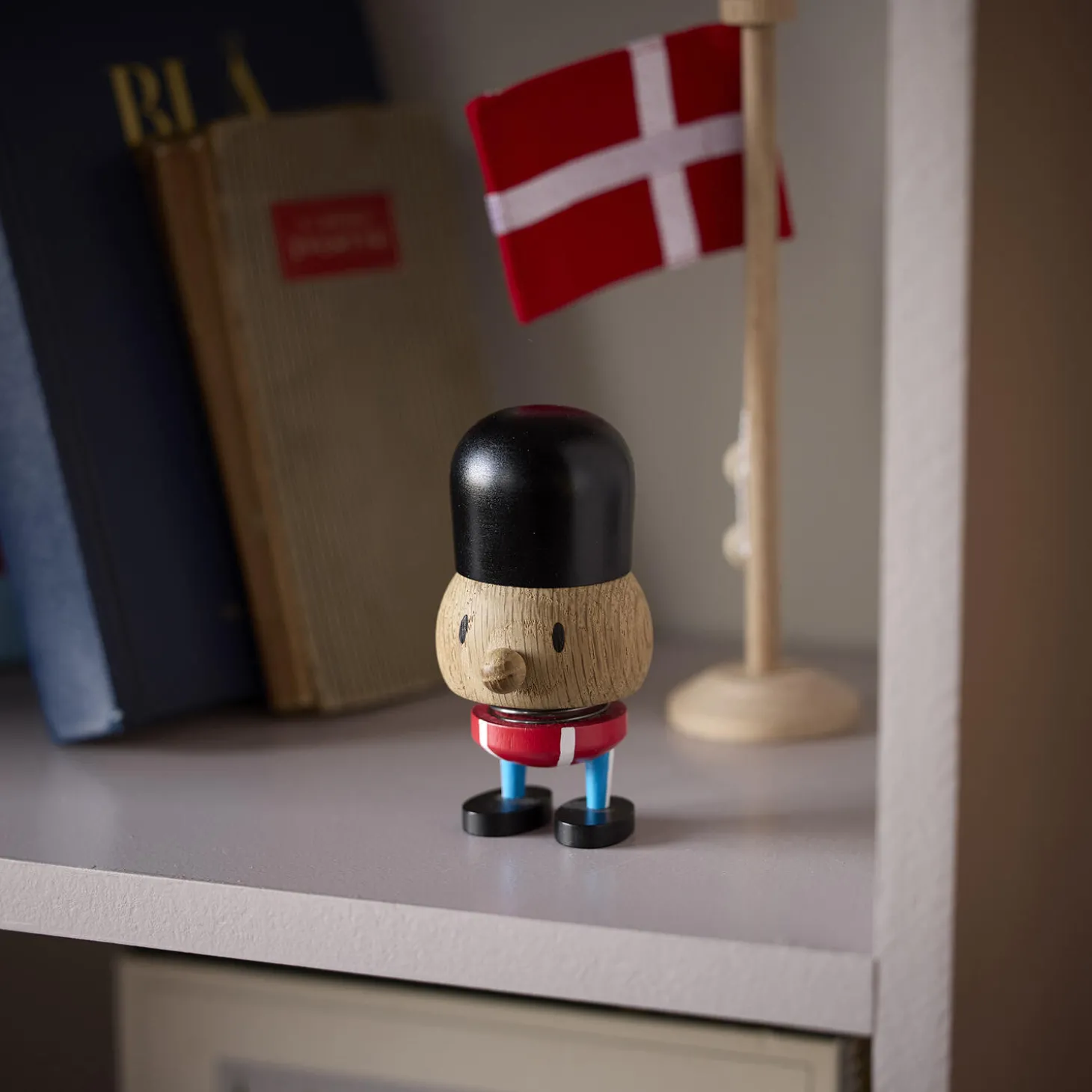 Med høj bjørneskindshue og blankpolerede støvler er garderen et stolt symbol på Danmark – og dermed også på glæden. Denne lille fyr er smukt udformet i egetræ, og han vogter det gode humør og sikrer, at enhver får et bredt smil på læben, når man ser ham. H 9,6 cm, D 4,8 cm