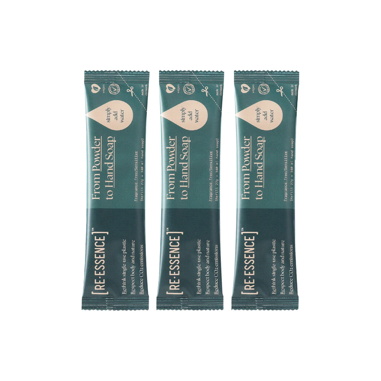 ET REFILL SÆT INDEHOLDER: 3 x pulver refills 27g (1 refill = 340ml håndsæbe).