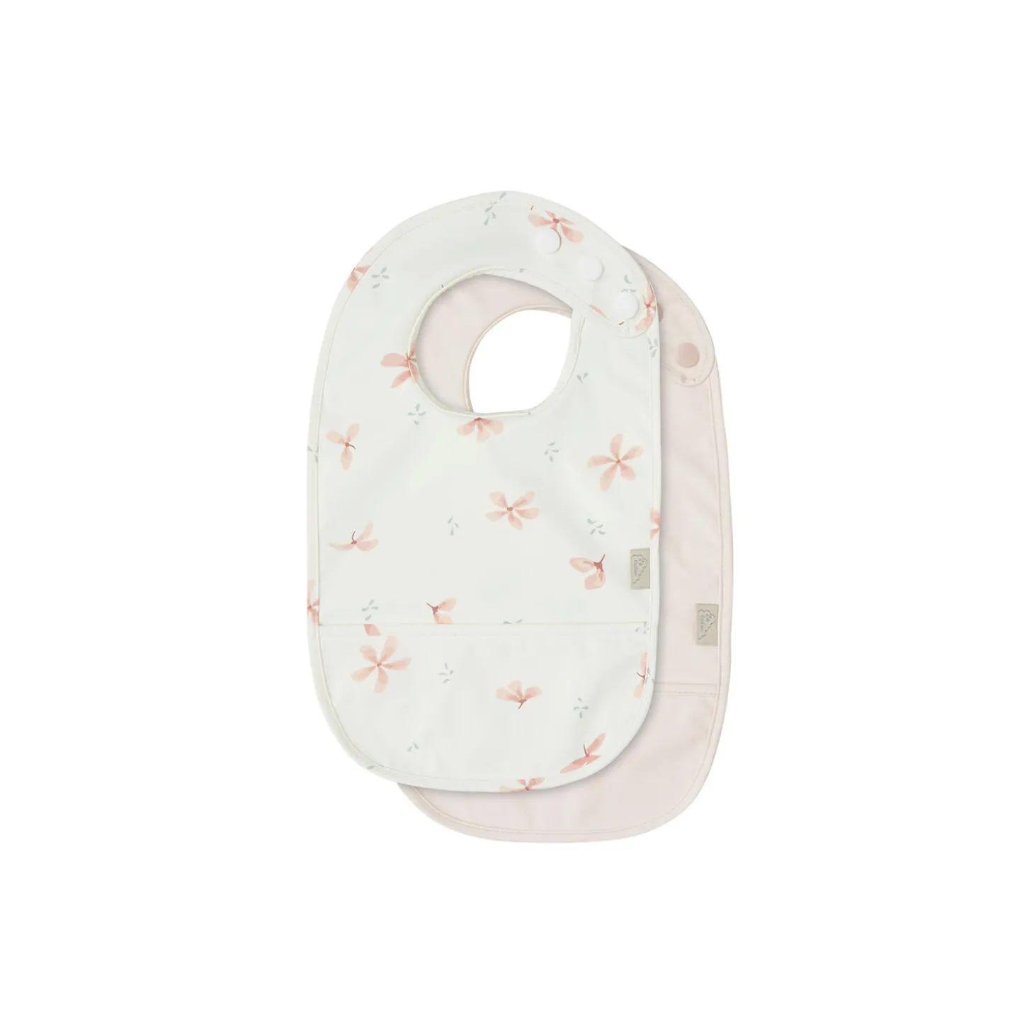 Sæt med to pæne og praktiske hagesmække, der nemt kan tørres af og er designet med en lomme foran til at fange mad på afveje. Hagesmækkene er fremstillet i genanvendt polyester. Et hverdags-must-have til de mange potentielt plettende måltider. Kommer