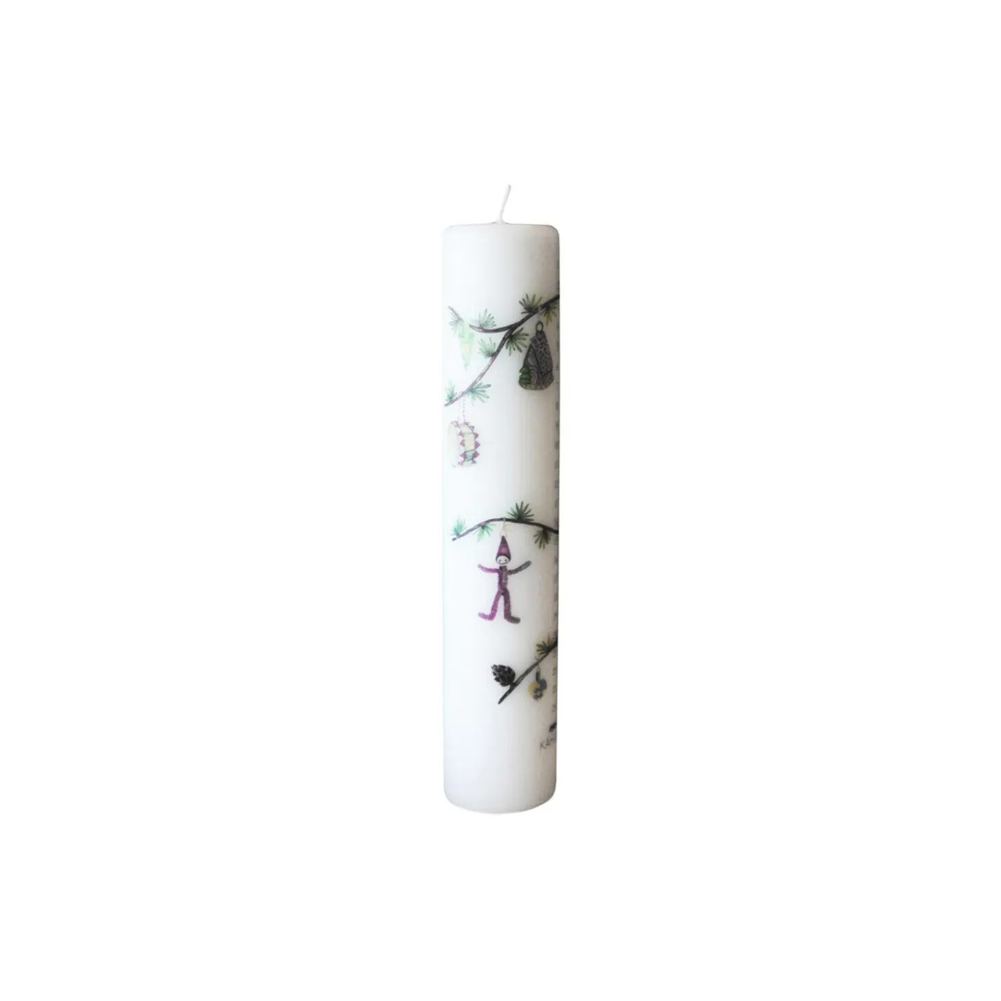 Træd ind i julens magiske og fredfyldte univers med Hammershøi Christmas. Her er der roligt, trygt og nærværende med nostalgiske og klassiske julemotiver malet i akvarel af kunstner Rikke Jacobsen og overført til Hammershøi-stellet designet af Hans-Christian Bauer. Også Hammershøi Christmas-kalenderlyset 2024 er fyldt med hyggelige, traditionelle motiver, der sørger for, at du på smukkeste vis kan tælle ned til juleaften. Kalenderlyset har en diameter på 5 cm og måler 25 cm i højden. Og i tråd med de foregående år symboliserer motiverne alt det, som Hammershøi Christmas står for. 2024-udgaven af det klassiske kalenderlys er selvfølgelig som sædvanlig udstyret med tal fra 1 til 24 og er derudover prydet af en snemand med et hjerte i hånden, en gave og et flettet hjerte i blå nuancer, et rensdyr, en tromme, et glaskugleornament i guld/rosa, et lille rødt kræmmerhus og tre cookies formet som et juletræ, et snefnug og en strikket sweater. Alt sammen hængt som små motiver på den velkendte lærkegren med kogler. Kalenderlyset er fremstillet i fuldraffineret specialvoks, der brænder smukt helt indtil den 24. december.