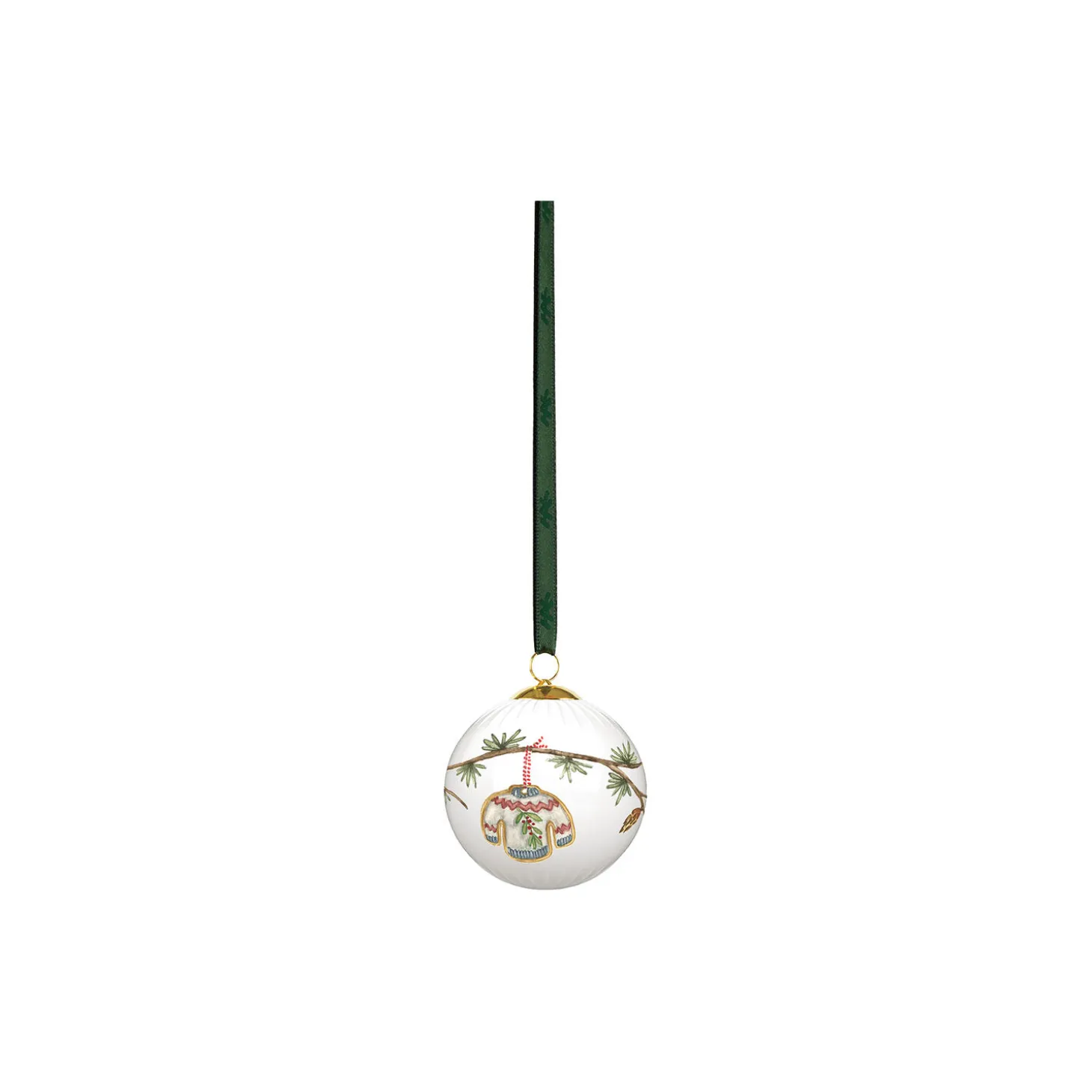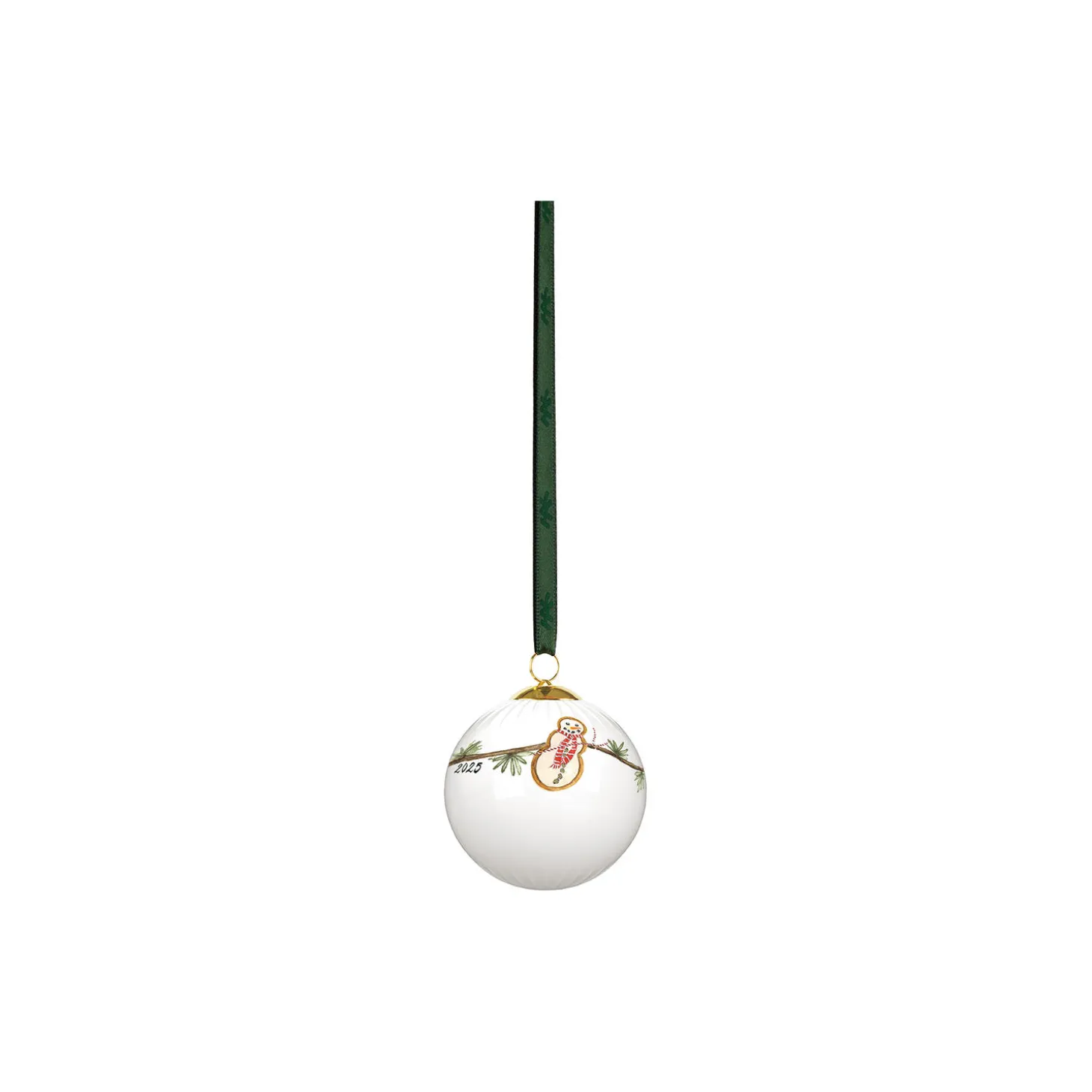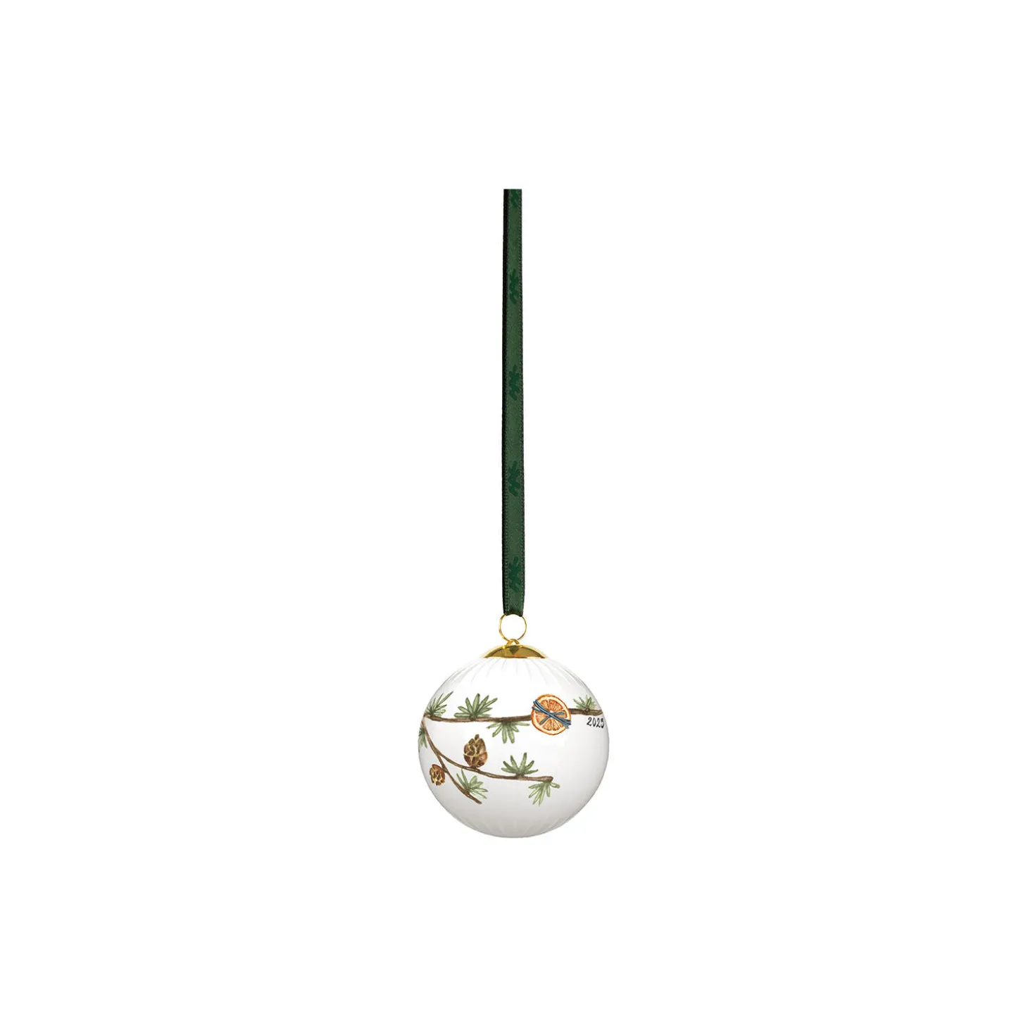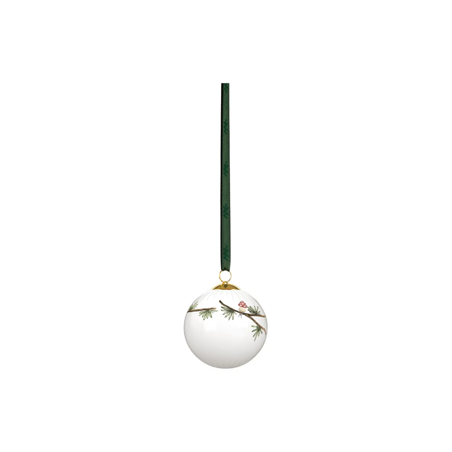 Kähler hylder julens særlige nostalgi og traditioner og inviterer med det både klassiske og moderne julestel Hammershøi Christmas os alle ind i julens magiske og fredfyldte univers. Også Hammershøi Christmas-julekuglen 2025 er formet af tradition som en hyldest til den autentiske, nostalgiske jul. Julekuglen har en diameter på 6 cm og er dekoreret med en cedergren med lærkekogler, der er pyntet med den fineste ornamentik i form af en skive appelsin med blå bånd, en yndig lille svamp og to hjemmelavede honningkager formet som henholdsvis snemand og julesweater, der bringer autenticitet og ægthed ind i julen. Og så er den selvfølgelig også udsmykket med årstallet 2025. Måske har du allerede en eller flere Hammershøi Christmas-julekugler fra de foregående år? Lad dem sammen skabe julestemning i vinduet, eller hæng dem på grene, der placeres i en vase. De yndige julemotiver er gennem årene skabt af kunstner Rikke Jacobsen, der hvert år tilfører det klassiske Hammershøi-stel designet af Hans-Christian Bauer endnu et strejf af julemagi. I dag rummer Hammershøi Christmas dele nok til en komplet opdækning til alle decembers måltider, fra brunch og frokost til julemiddag. Der følger en dekorativ grøn snor med til julekuglen, så du nemt og stilfuldt kan hænge den op.