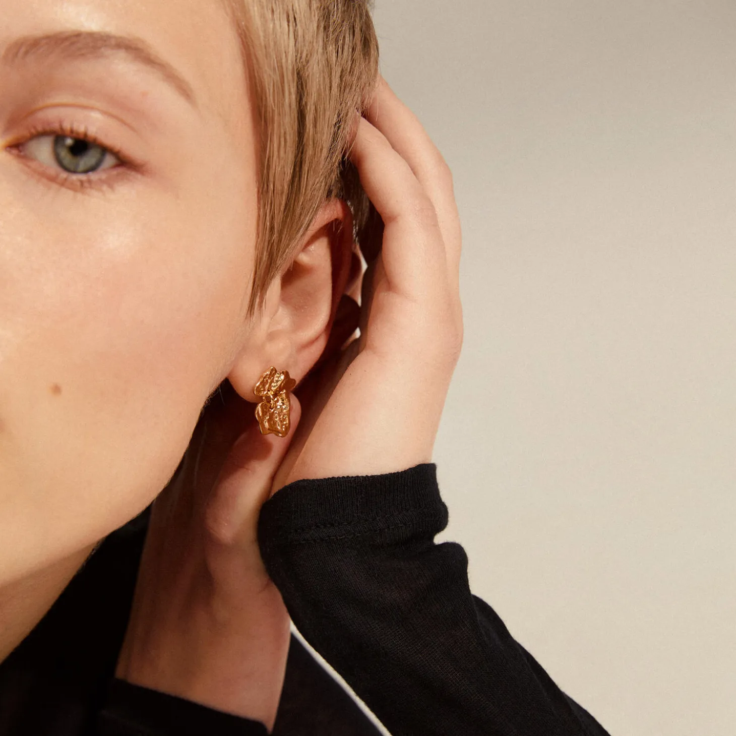 Explore endless horizons! De guldbelagte øreringe fra HORIZON-kollektionen åbner døren til uendelige muligheder. Med hele seks øreringe i sættet kan du skabe et trendy ear curation look ved at mixe og matche øreringene op langs øret. Style dem med en loose hørskjorte for et effortless og cool vibe.