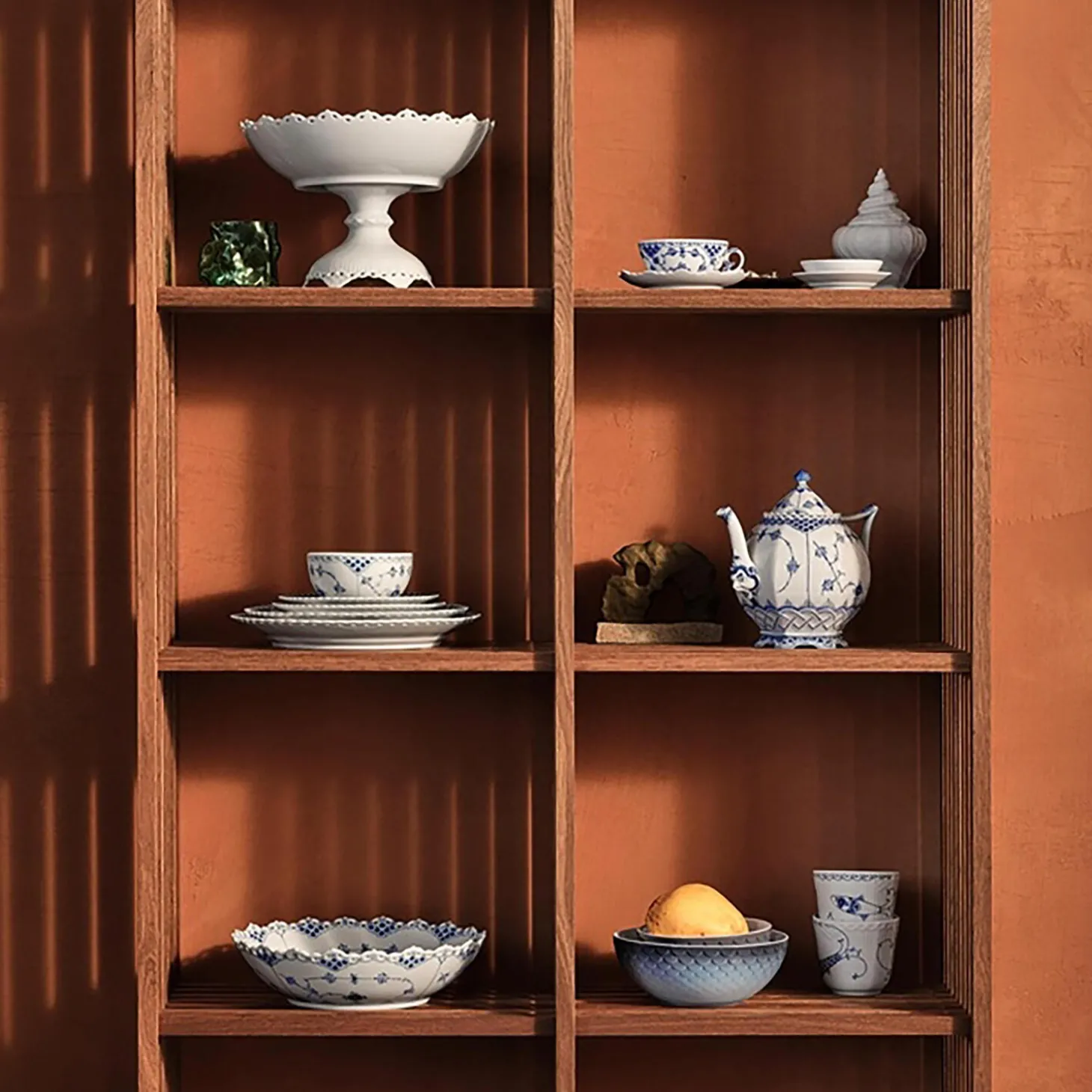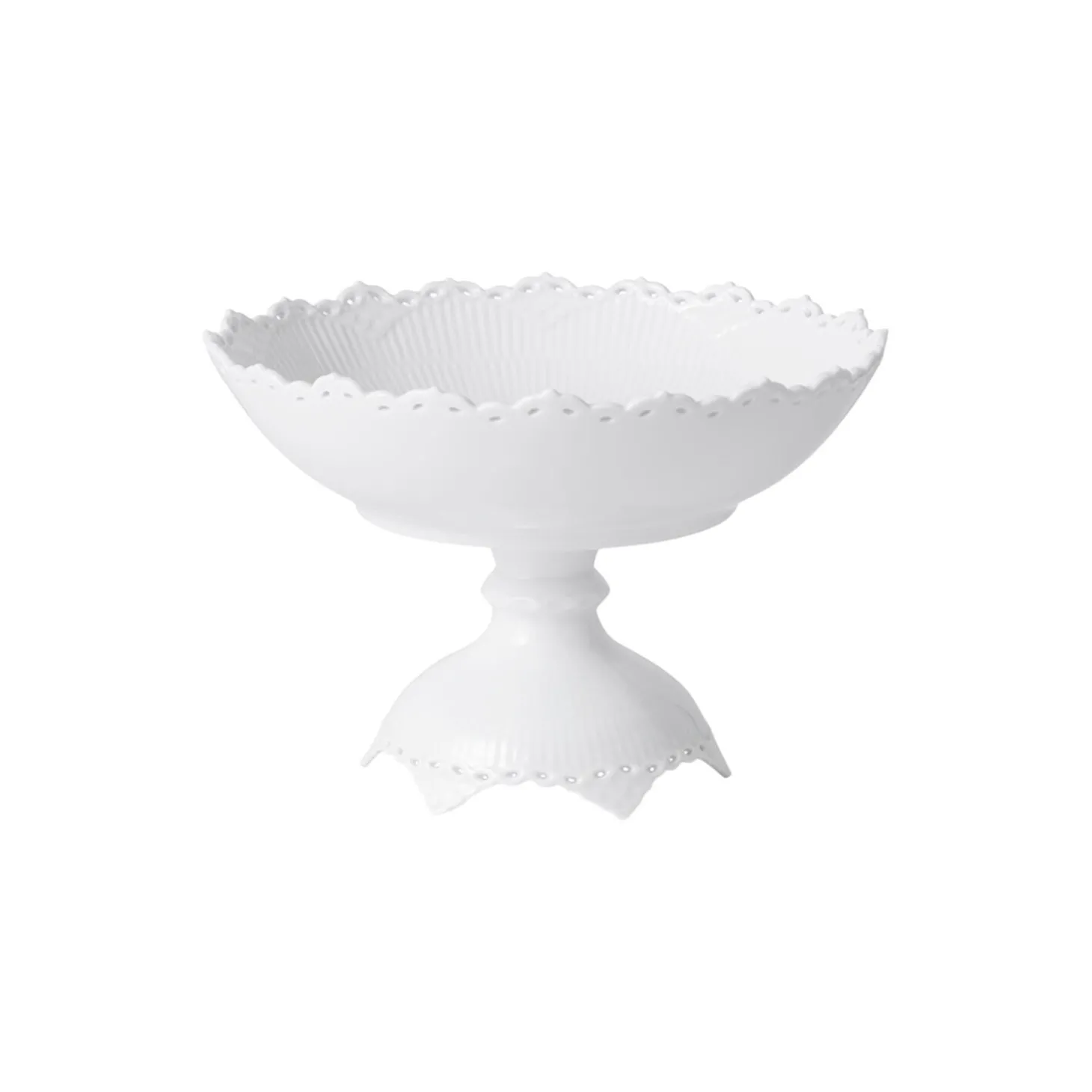 Hvid Riflet Helblonde Skål på fod fra Royal Copenhagen.
