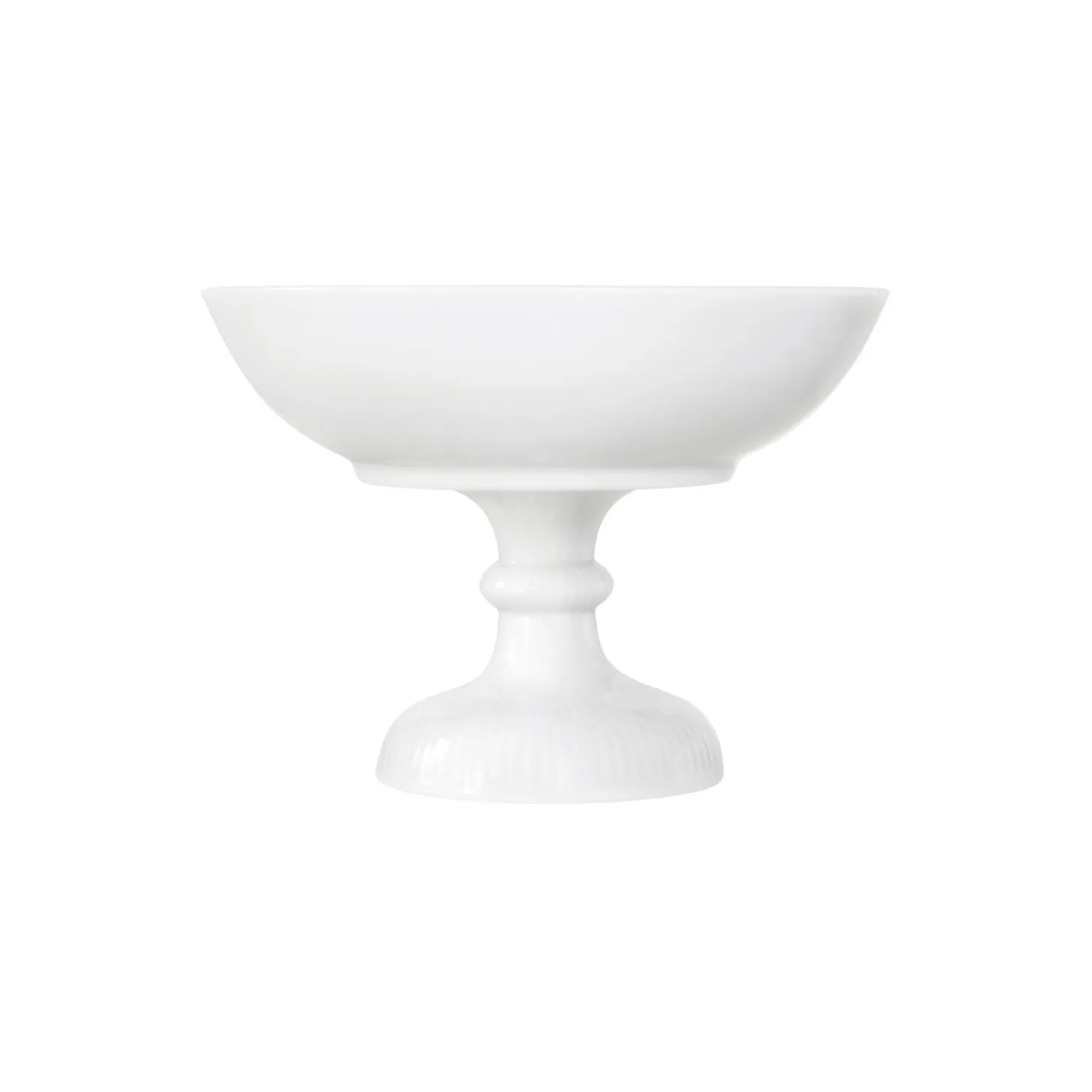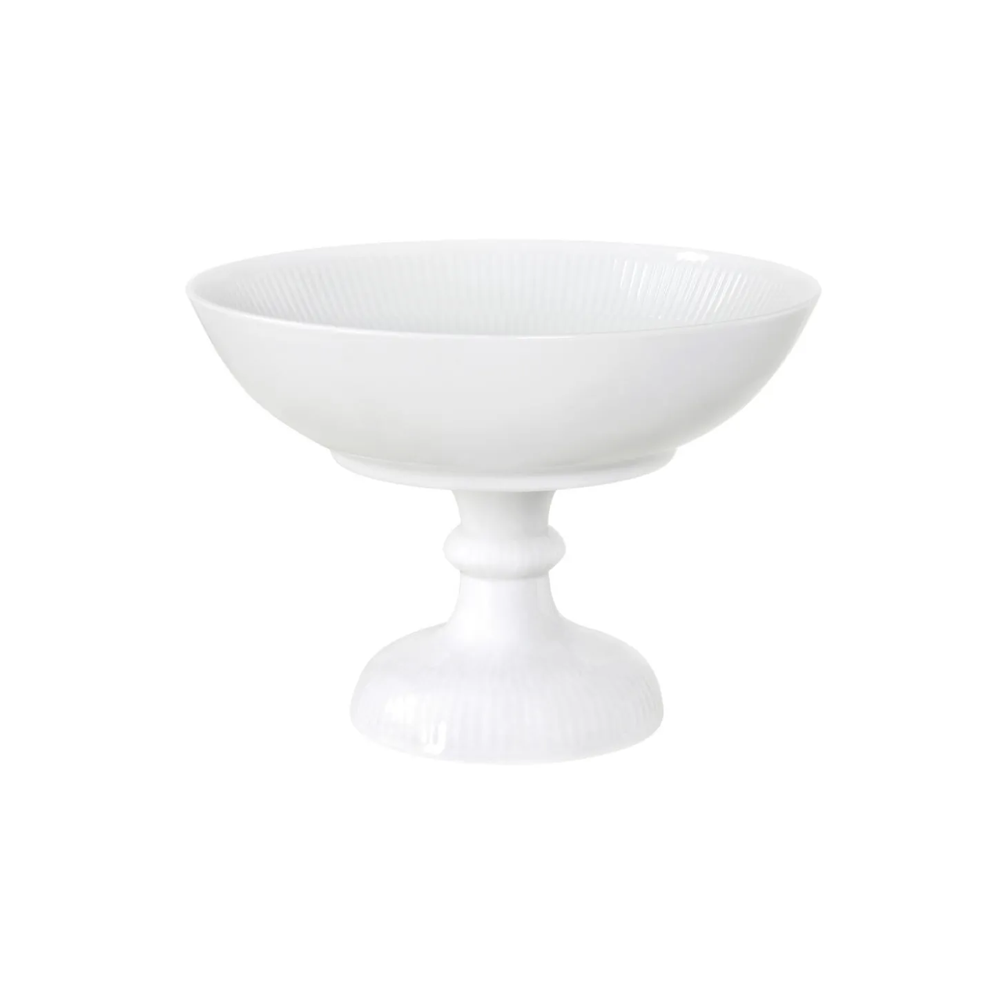 Hvid Riflet skål på fod i porcelæn fra Royal Copenhagen. Denne 15 cm Hvid Riflet skål på fod er ren elegance og vil være perfekt til søde sager på et kagebord.Den er en skønhed i sig selv, men kan også sagtens sættes i selskab med andre kagefade fra Royal Copenhagens stel.