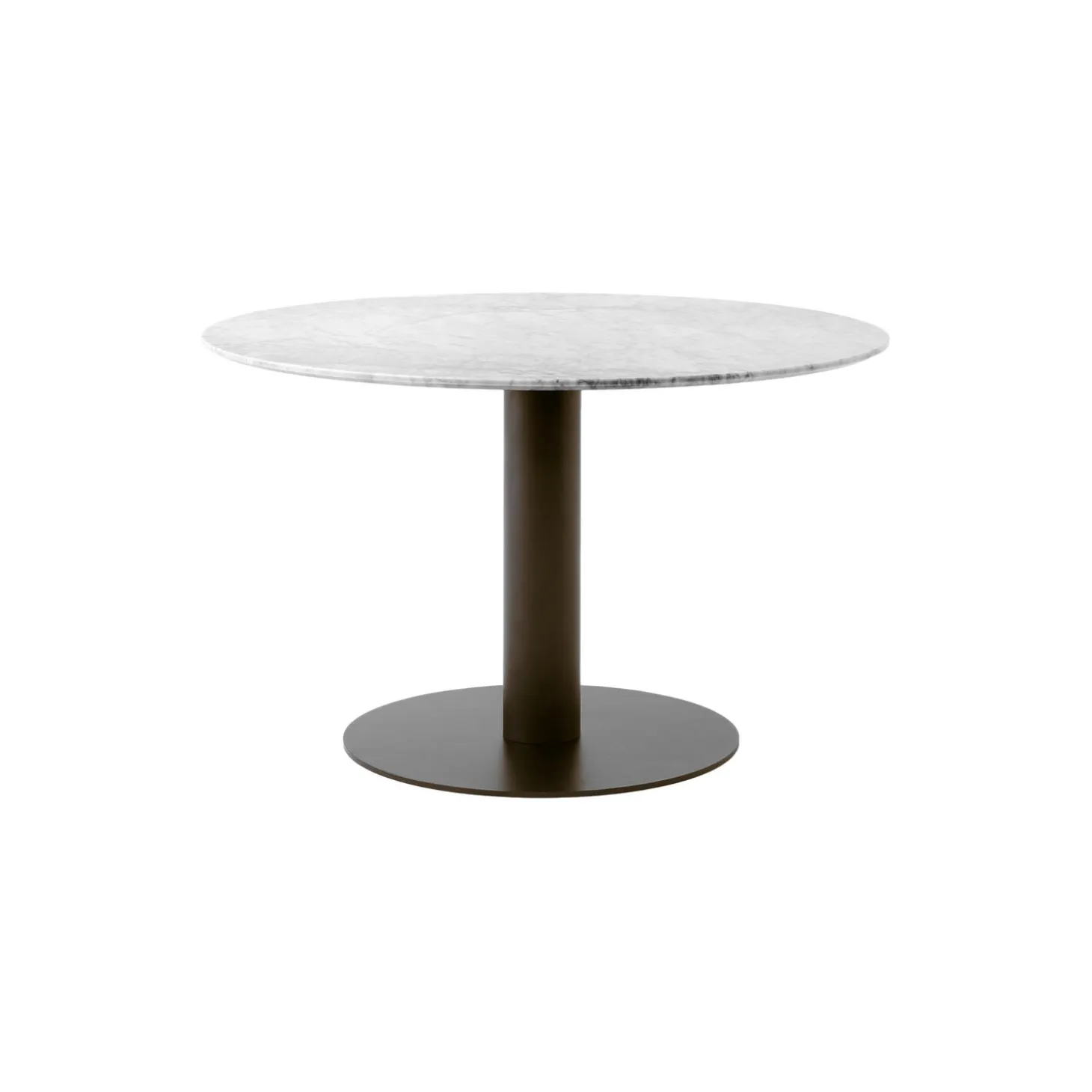 In Between SK19 spisebord med bordplade i Bianco Carrara marmor og stel pulverlakeret stål fra &Tradition. Farve: Bianco Carrara/bronzed. Mål: H: 73 x Ø 120 cm. Design: Sami Kallio.