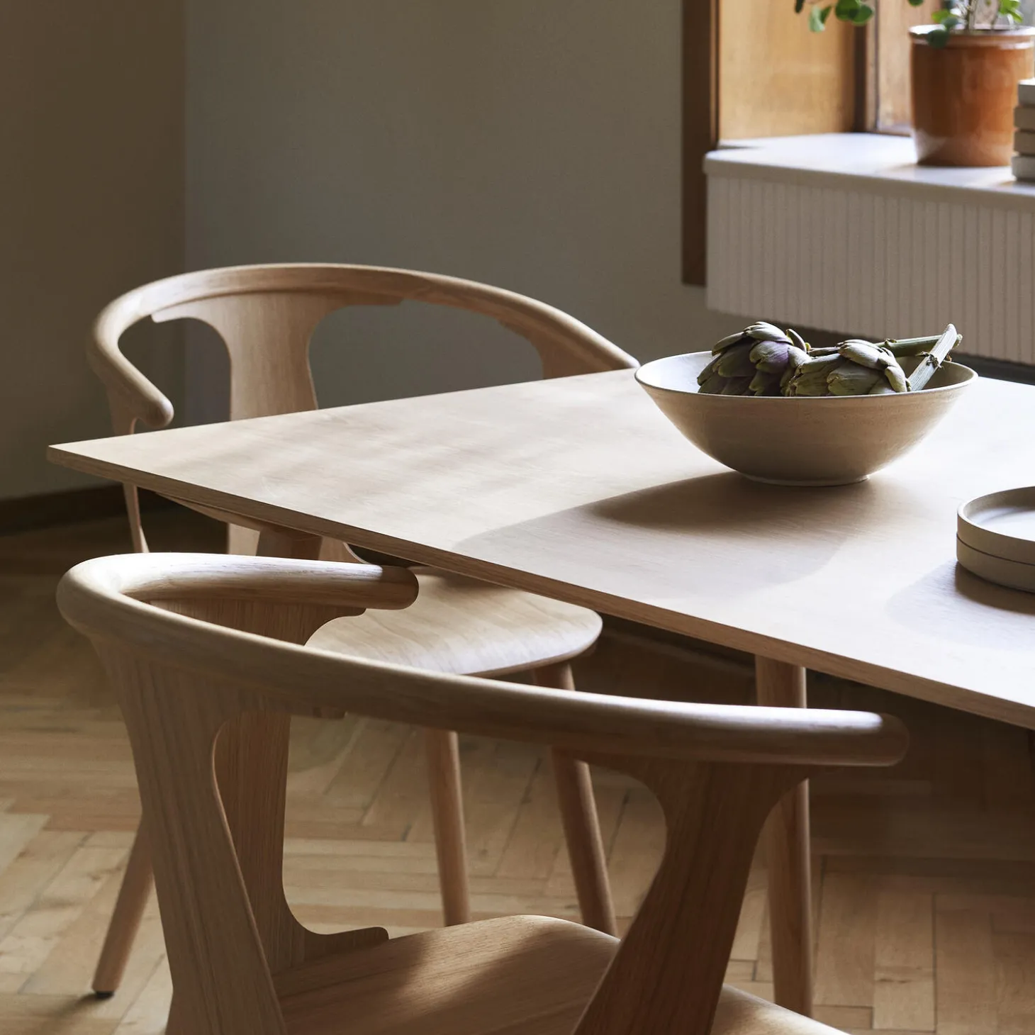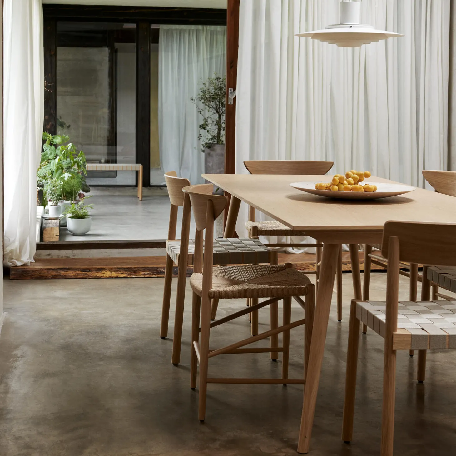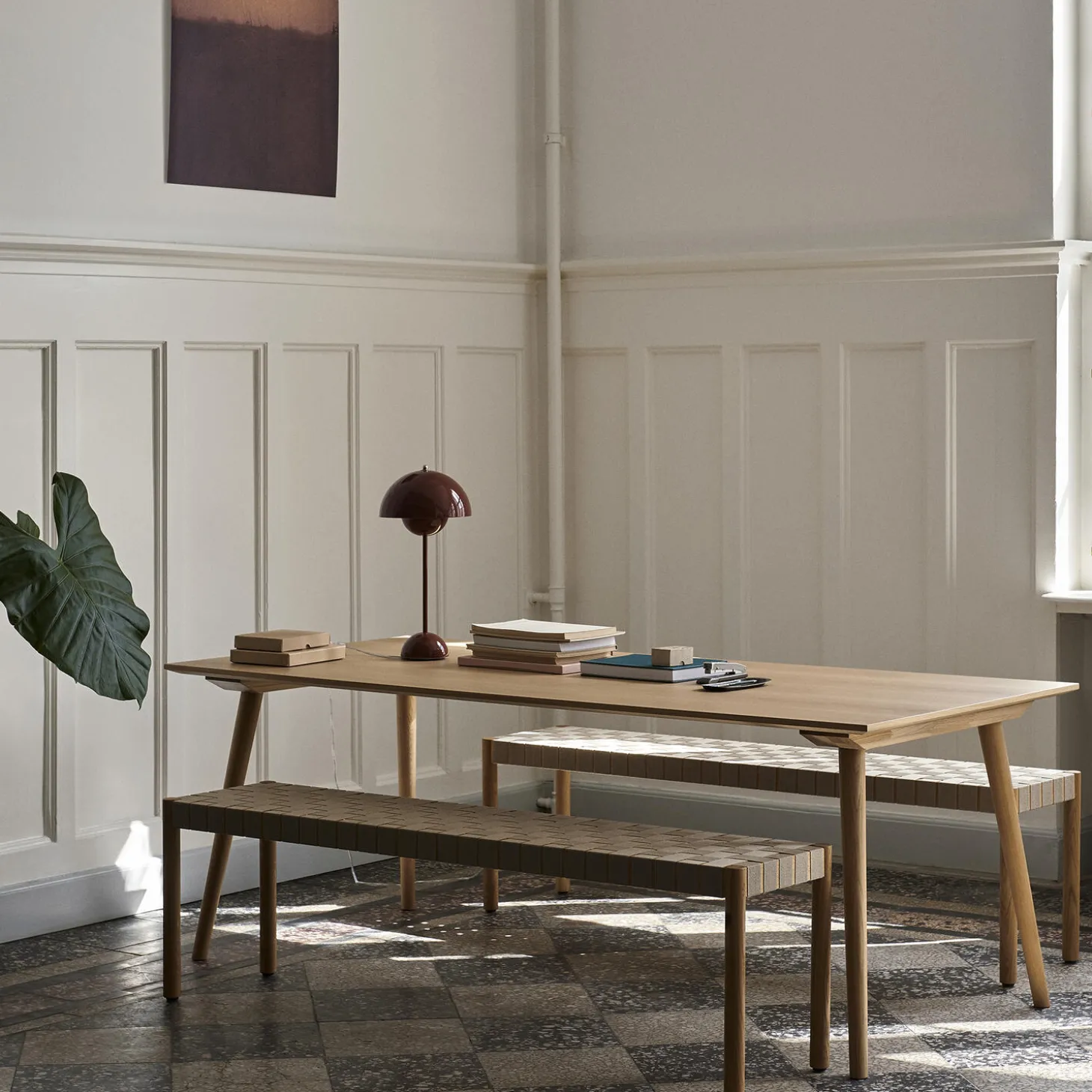 In Between SK5 spisebord med bordplade i MDF og olieret egetræsfinér samt stel i olieret eg fra &Tradition. Farve: olieret eg. Mål: H: 74 x B: 200 x D: 90 cm. Design: Sami Kallio.