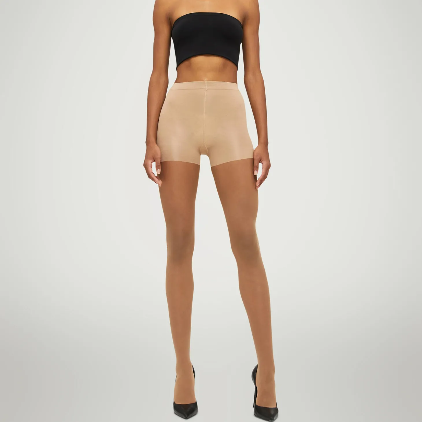 Takket være en innovativ strikketeknik og høj elasticitet danner disse gennemsigtige tights med formende trusser talje, mave og numse for en glat silhuet. 10 den.