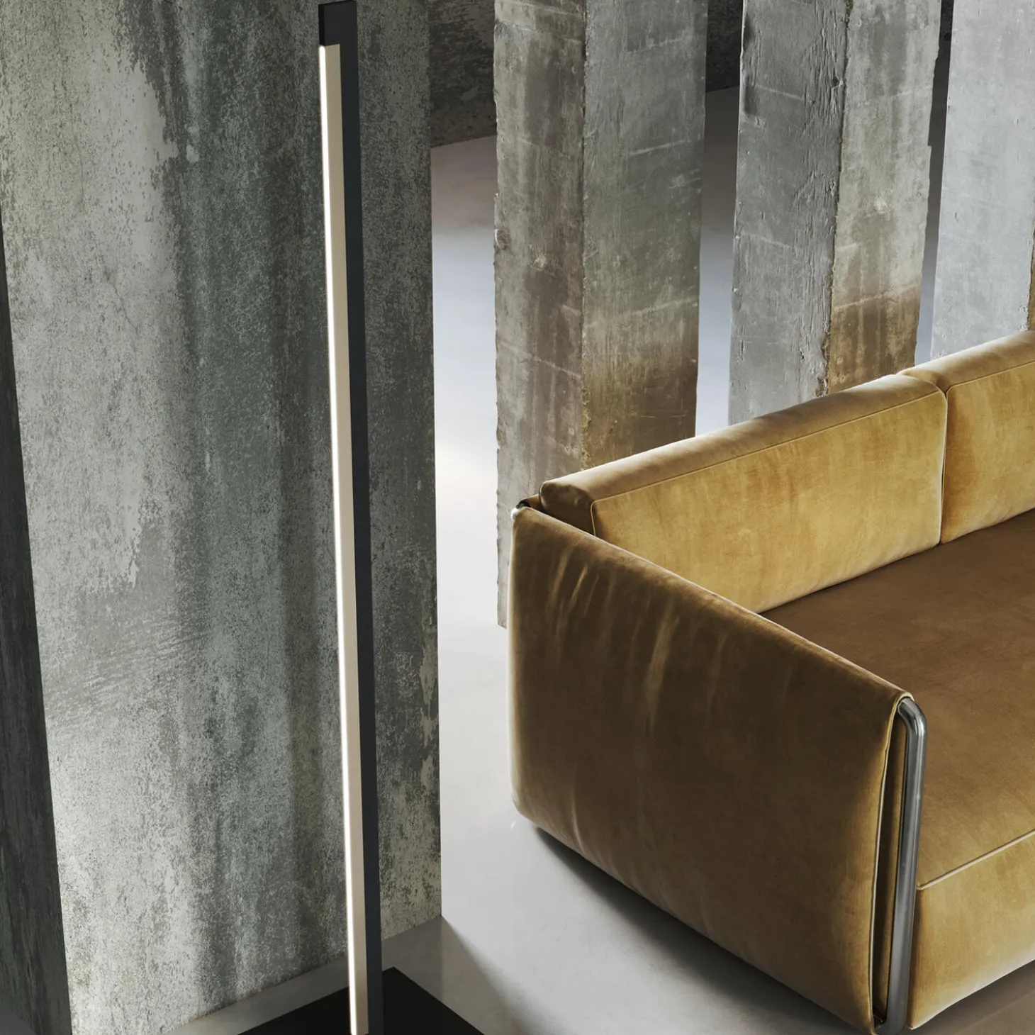 INLAY F1 LINEAR gulvlampe i aluminium og glas fra LIGHT-POINT. Farve: matt black/satin gold. Mål: H: 162,1 x Ø 35 cm. Lyskilde: 21W LED 2700-3000K. Design: Studio F. A. Porsche.