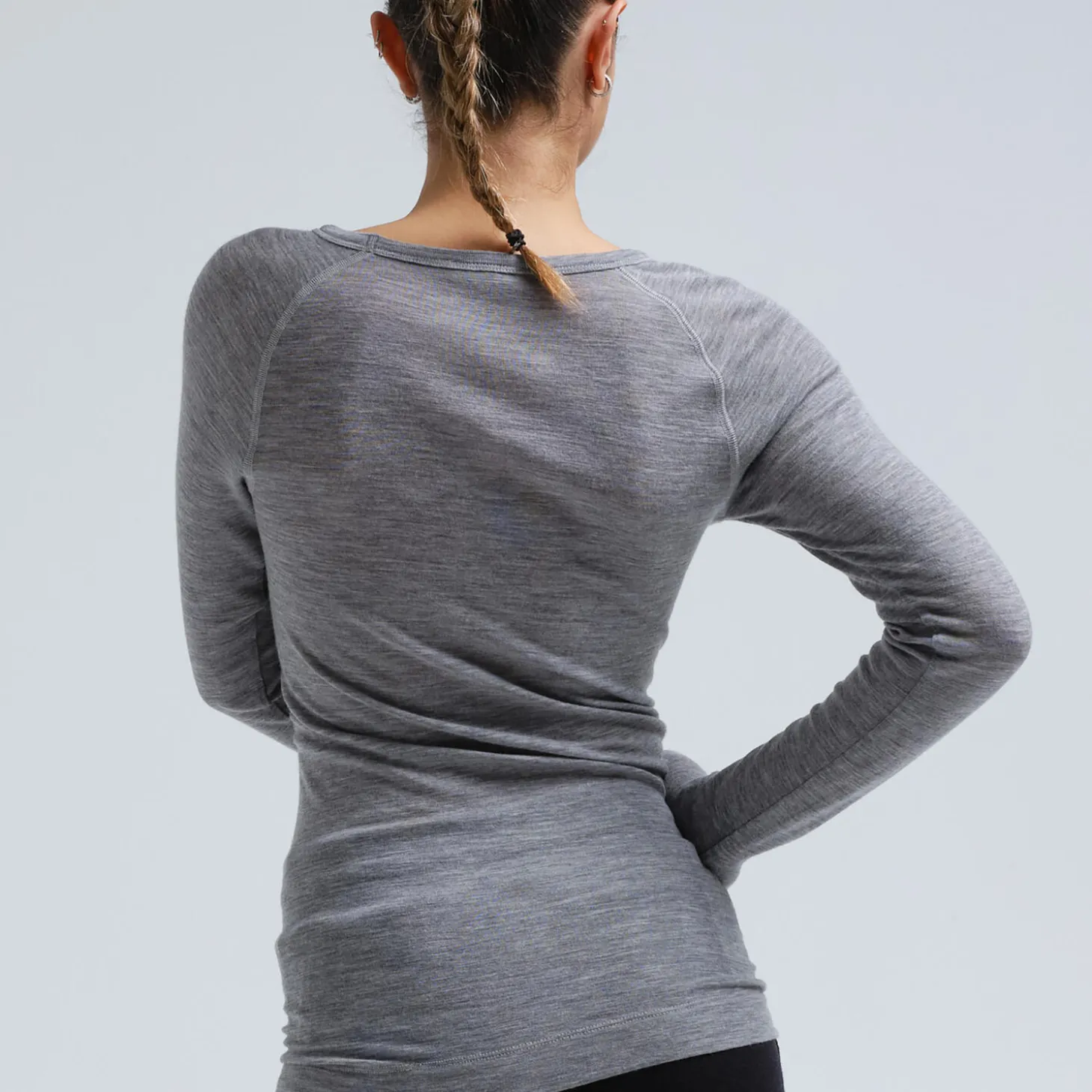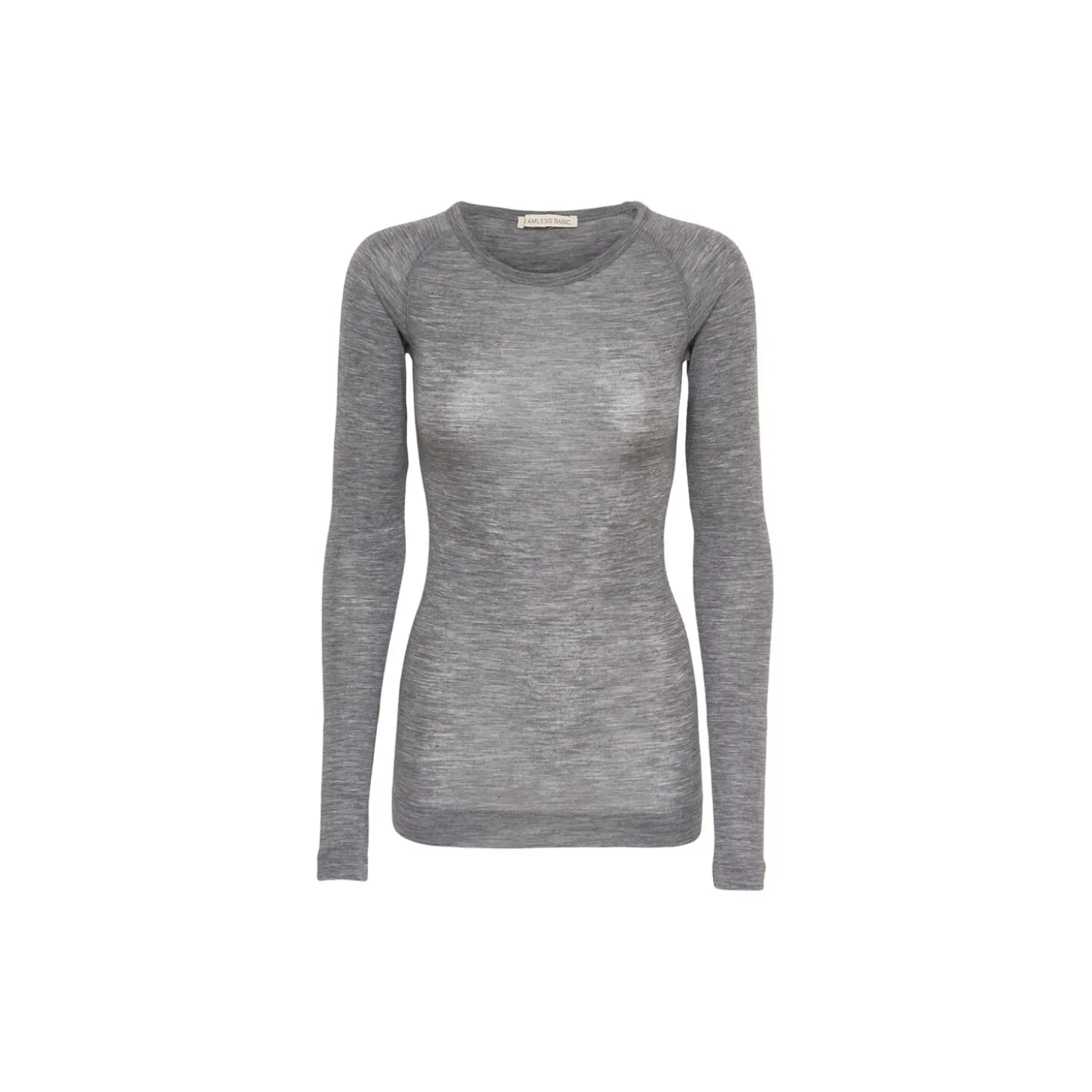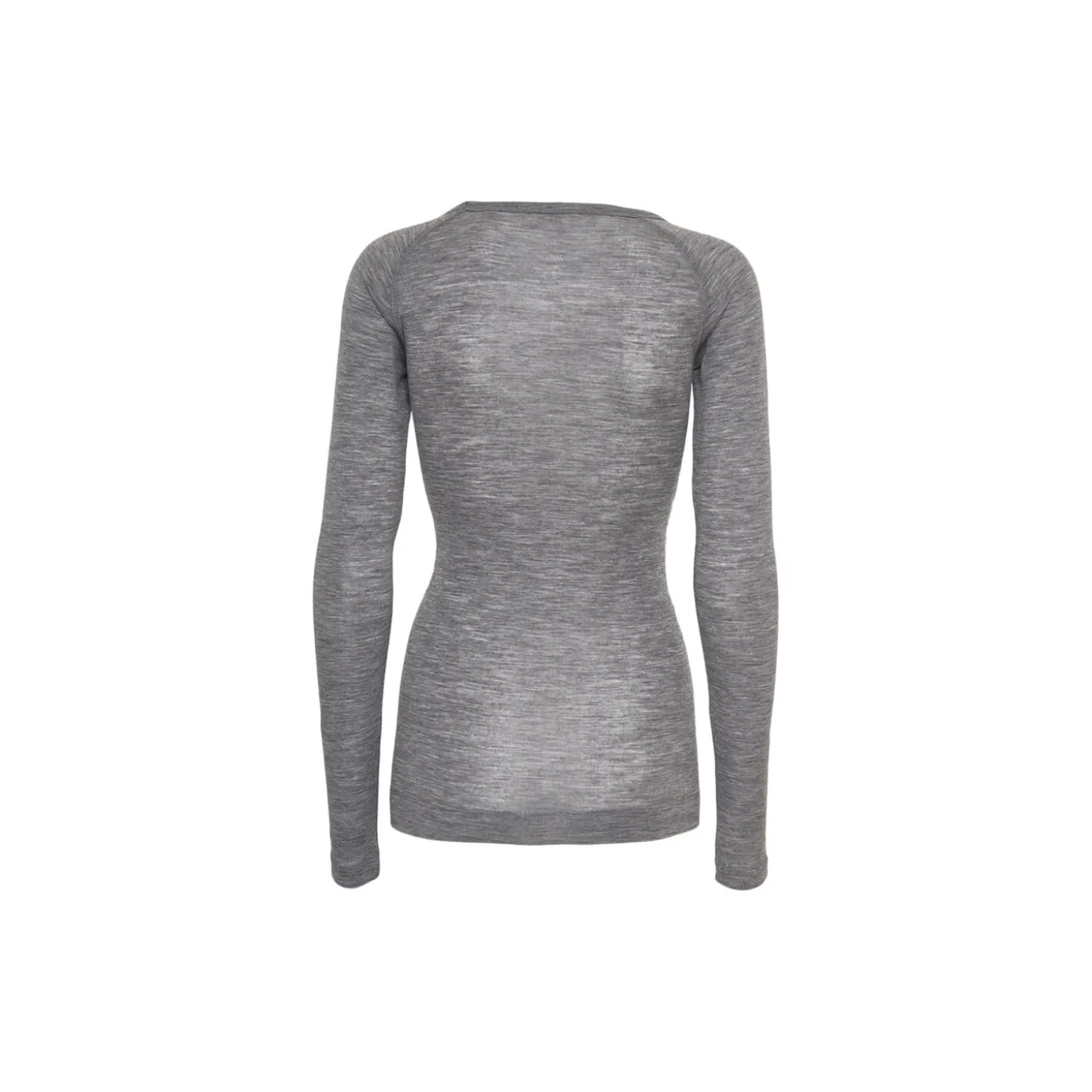 Bluse med semi dyb rund halsudskæring og raglan ærme. Halsudskæringen er med ribkant. Dobbeltstikning på ærme og bund. Produceret i blød og let merinould, som har en naturlig temperaturregulerende effekt.