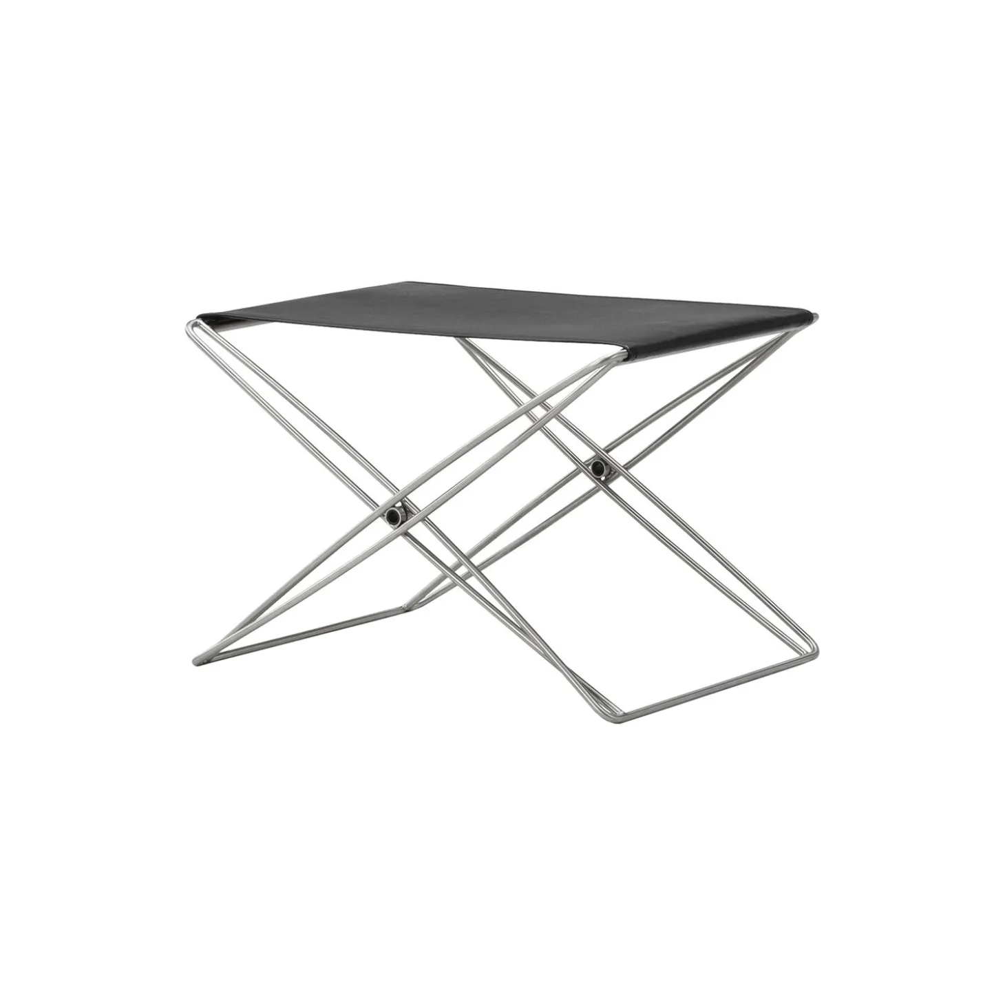 JG Foldestolen med sæde i Max 98 semianilinlæder og stel i børstet rustfrit stål fra Fredericia. Farve: Black 98. Mål: H: 40 x B: 60 x D: 46 cm. Design: Jørgen Gammelgaard.
